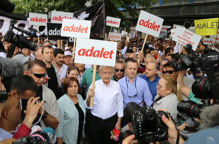 Cumhuriyet Halk Partisi (CHP) Genel Başkanı Kemal Kılıçdaroğlu’nun milletvekili Enis Berberoğlu’nun tutuklanmasına tepki olarak ‘Adalet’ istemiyle Ankara Güvenpark’ta başlattığı yürüyüşe Hatay’dan da katılımlar oldu.