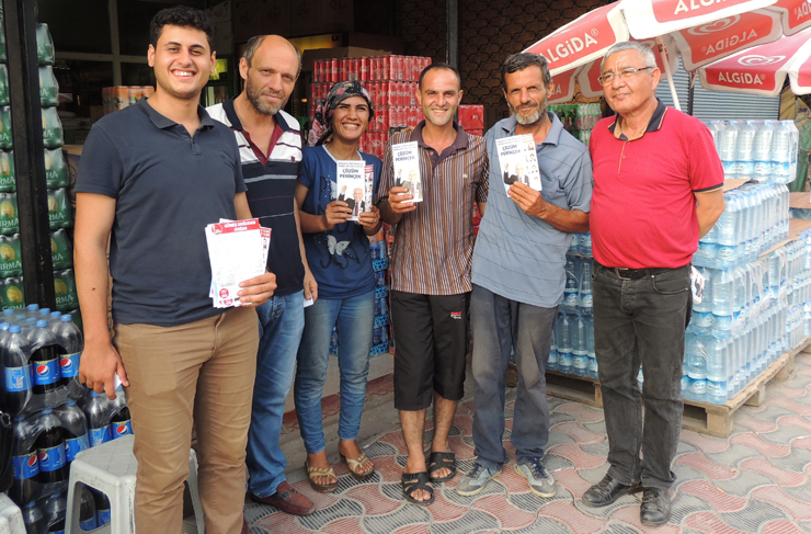 Esnaf ve vatandaşlarla bir araya gelerek seçim çalışmalarını yoğun bir şekilde sürdüren Vatan Partisi Hatay Milletvekili Adayları, bildiri dağıtarak projelerini anlatıyorlar.