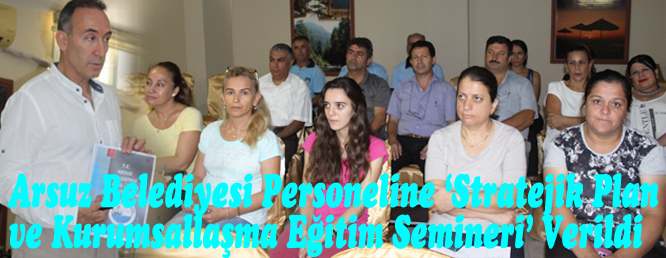 Arsuz Belediyesi’nin Doğu Akdeniz Kalkınma Ajansı (DOĞAKA)’nın desteğiyle Teknik Destek Programı Kurumsallaşma Eğitimleri kapsamında düzenlediği ‘Stratejik Plan ve Kurumsallaşma Eğitim Semineri’ sona erdi. Gazi Üniversitesi Öğretim Görevlisi Yrd Doç. Dr. Arıl Cansel tarafından belediye personeli ve birim müdürlerine iki gün boyunca verilen seminerde stratejik planın önemi, kurumsallaşma, kurum içi iletişim, motivasyon, kurum kültürü, yenilikçilik ve sürdürülebilirlik konuları ele alındı.