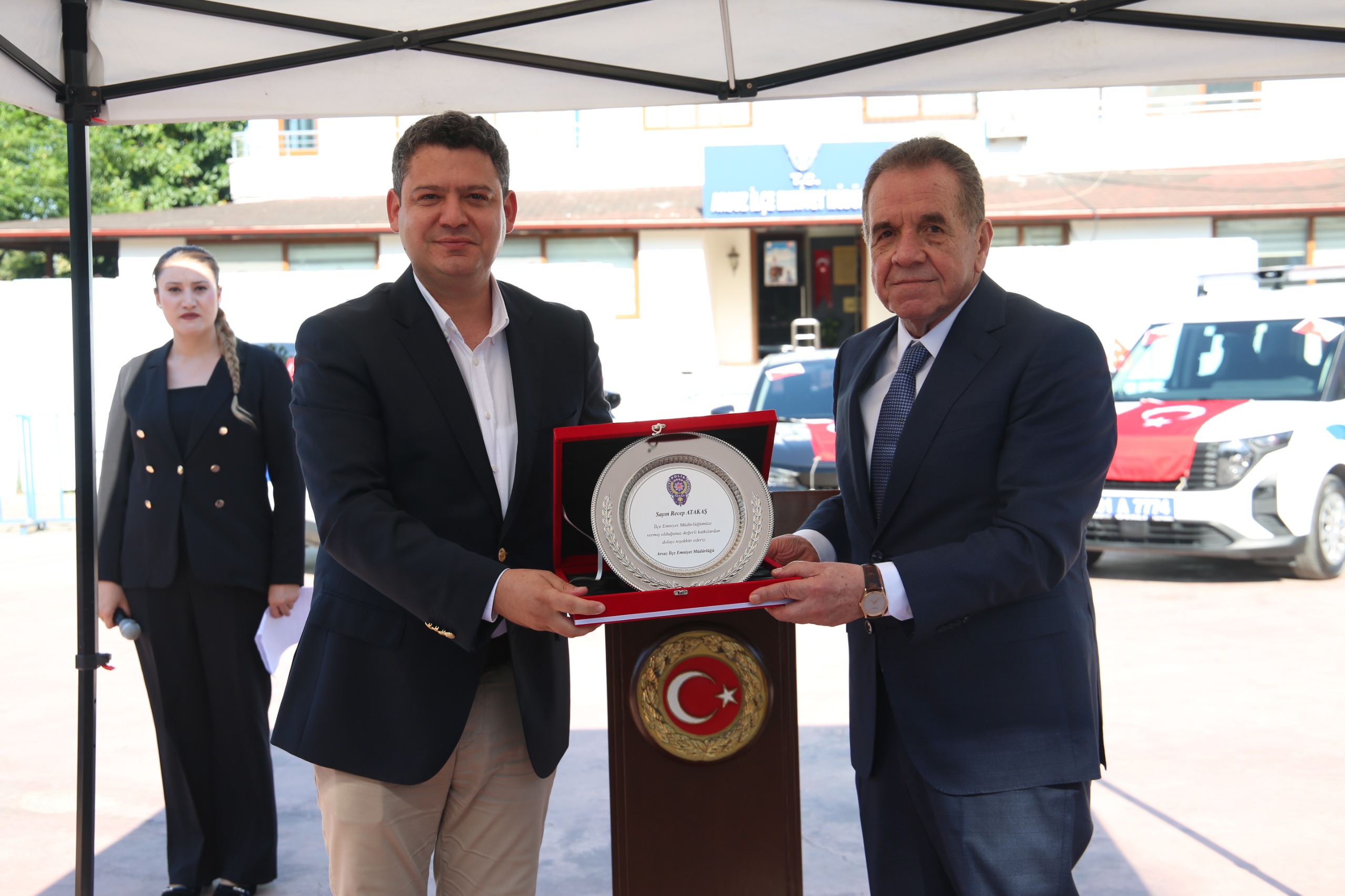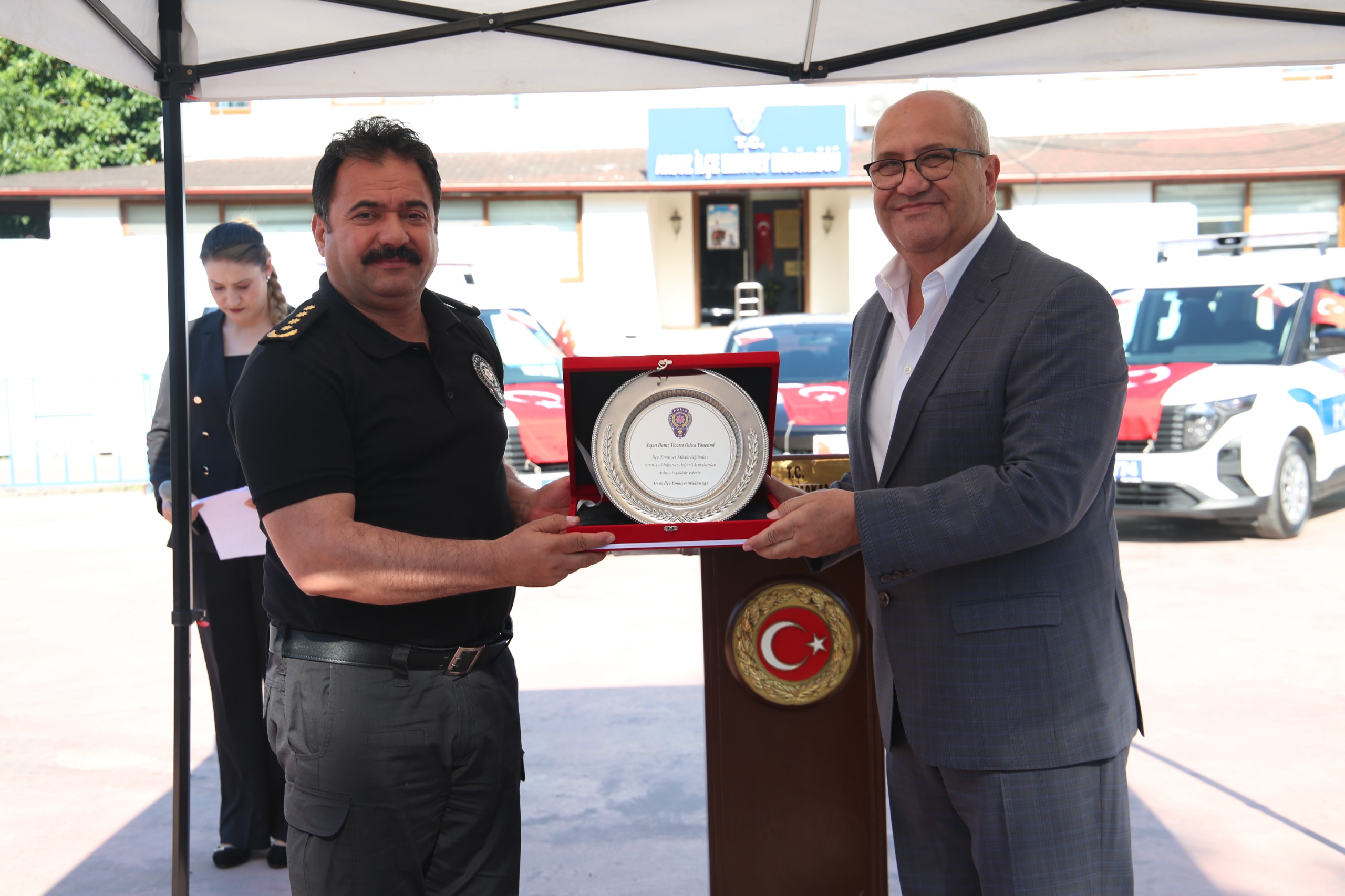 Hayırsever İş insanı Recep Atakaş’a plaketini Arsuz Kaymakamı Hasan Gökpınar, DTO İskenderun Şube Başkanı Kemal Kutlu’ya plaketini ise İl Emniyet Müdürü Kadir Gökce, Arsuz Kamu Güvenliği ve Toplum Hizmetlerini Geliştirme Derneği Başkanı Mehmet Altun’a plaketini Arsuz Emniyet Müdürü Hasan Gün takdim etti. (Haber Merkezi)