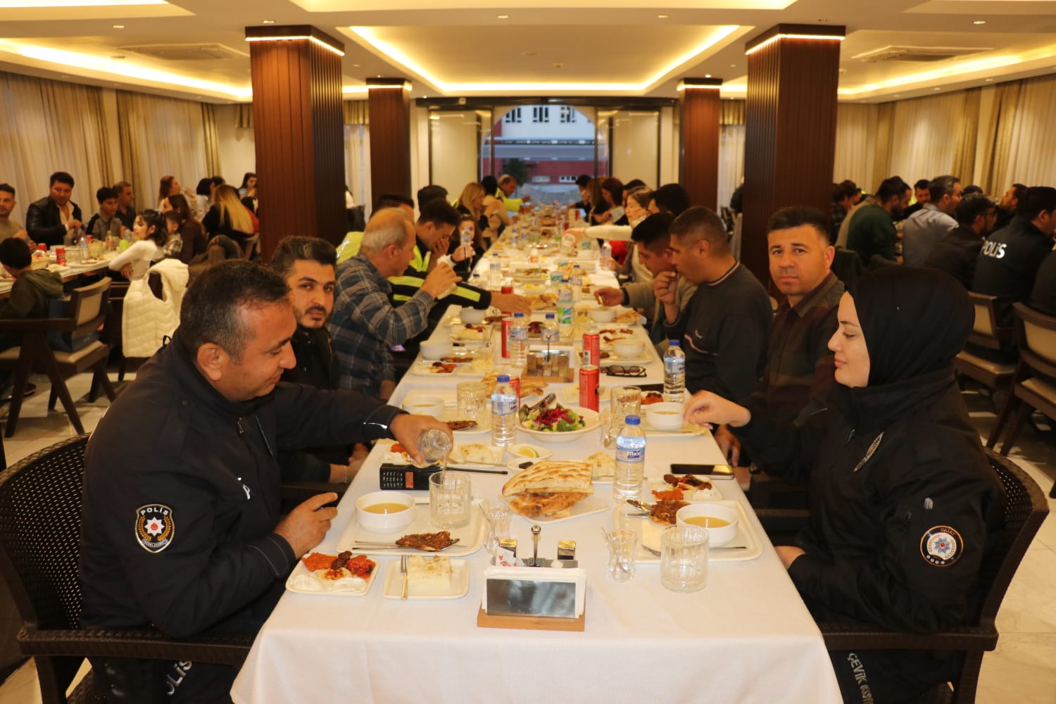 Emniyet Müdürü Hasan Gün ve Dernek Başkanı Mehmet Altun, iftar yemeğine katılan tüm personele çalışmalarında gösterdikleri özveri ve halkla bütünleşen çalışmalarından dolayı teşekkür ettiler. (Haber Merkezi)