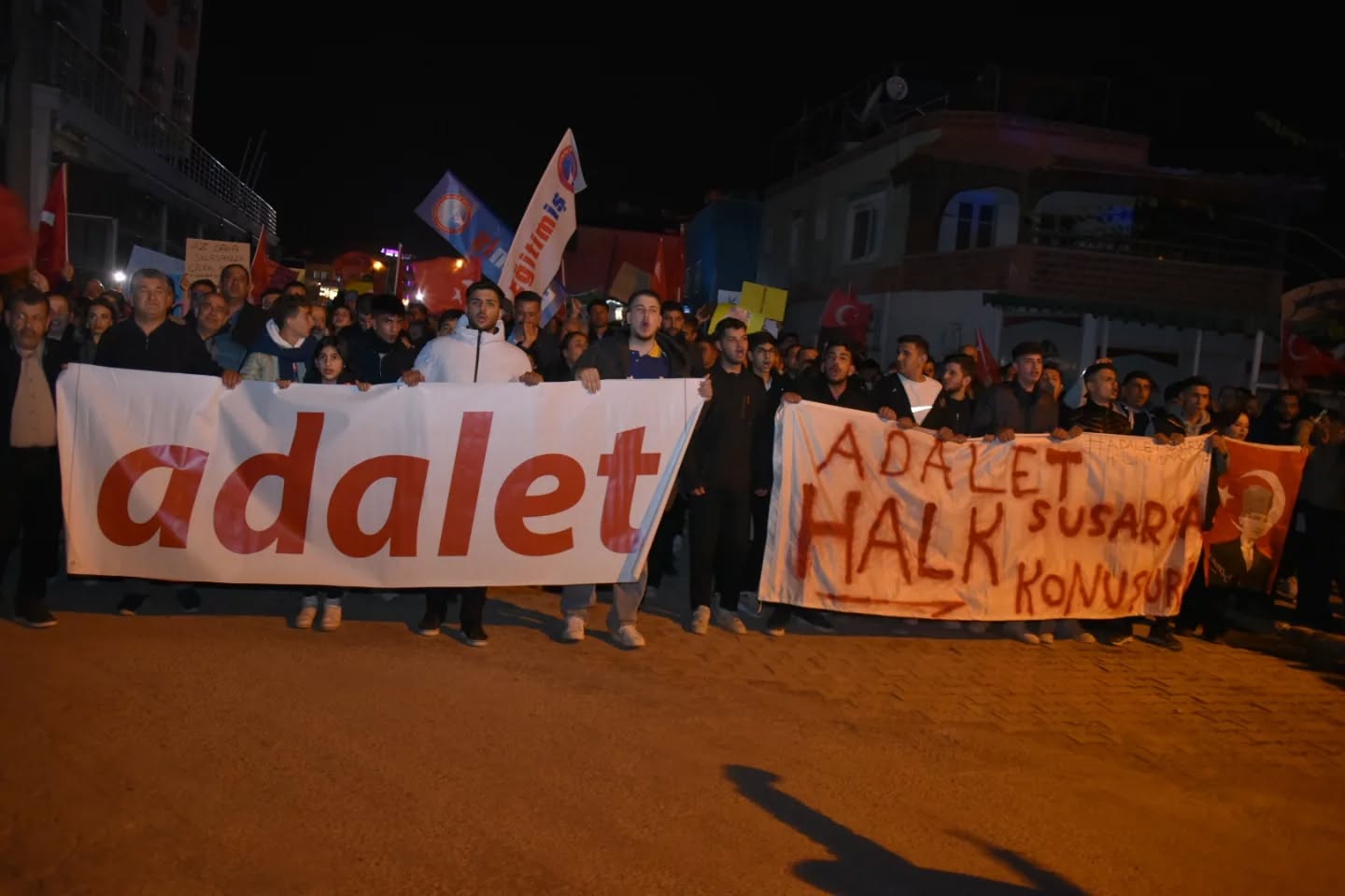 Sloganların atıldığı yürüyüş sonrası kısa bir değerlendirmede bulunan Başkan Sami Üstün; “Arsuz’un evlatları olarak ‘hak, hukuk, adalet’ diyerek demokrasimize, geleceğimize sahip çıkmak için bu akşam hep beraber sokakları doldurduk. Omuz omuza, elde bayraklarımız Ekrem Başkan’ın sesi olduk. Tek ses, tek yürek! Çok güzelsin Arsuz!” dedi.