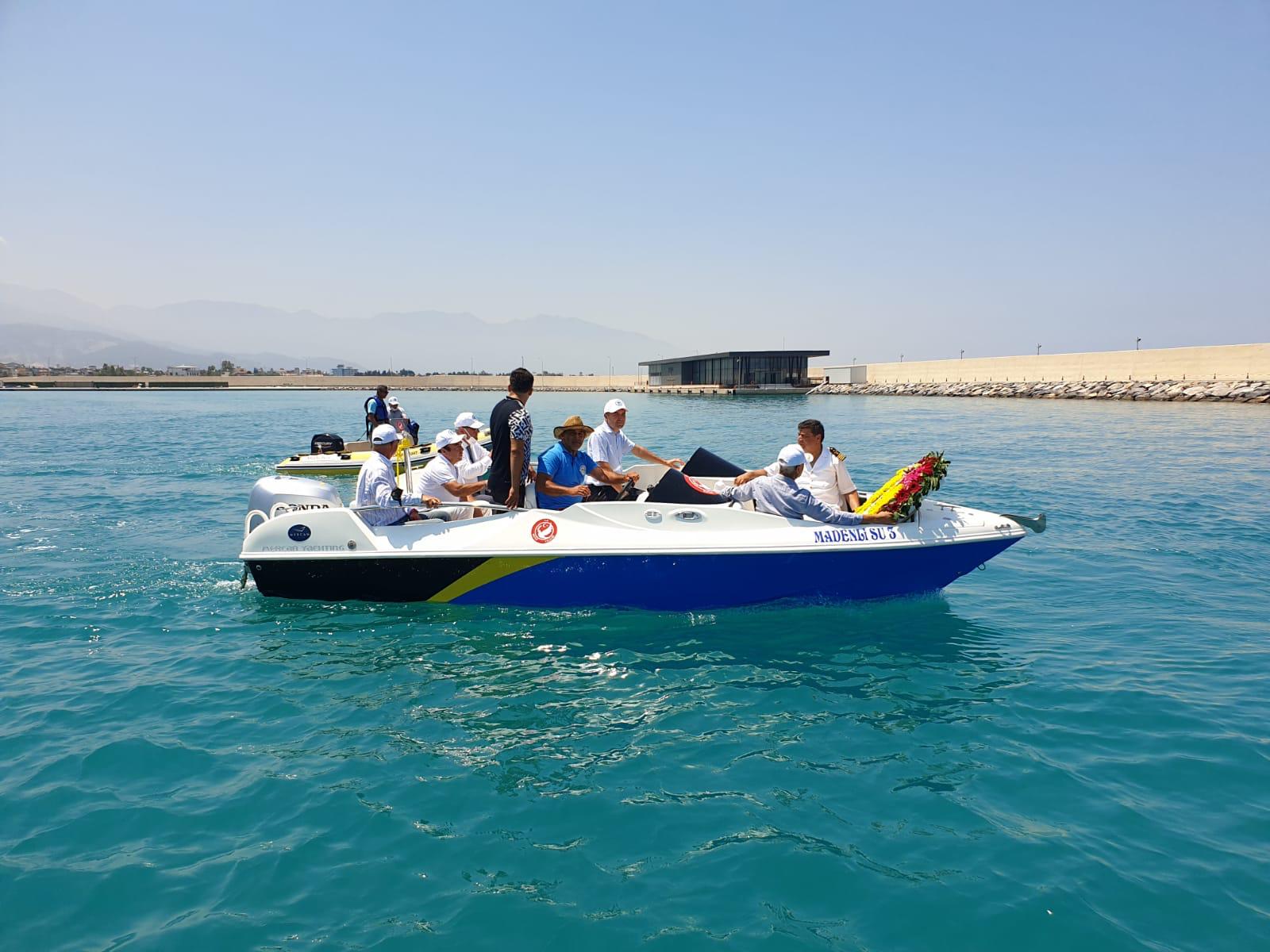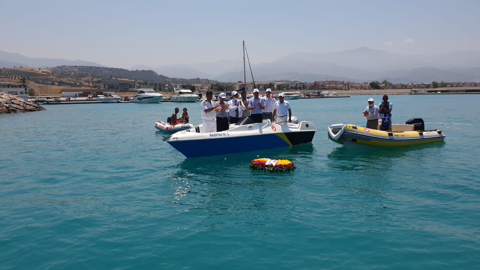 Madenli Yat Limanı ve Su Sporları Merkezinde gerçekleştirilen törende, denize Denizci Şehitler anısına çelenk bırakıldı.