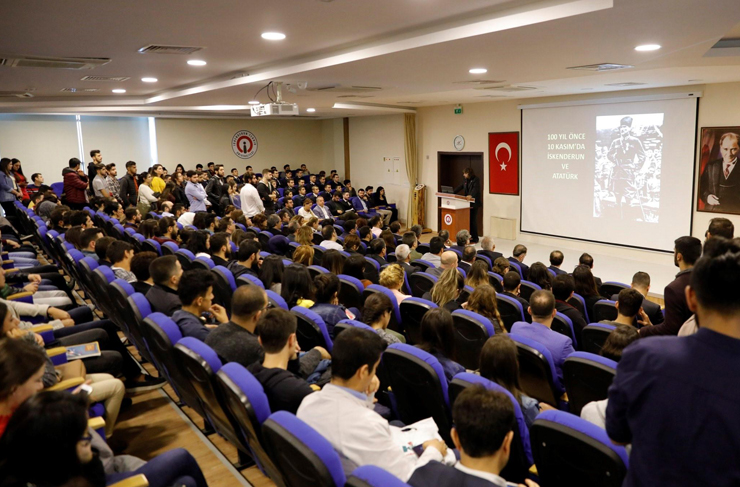 Cumhuriyetimizin kurucusu Gazi Mustafa Kemal Atatürk’ün 80. Vefat Yıldönümü münasebetiyle İskenderun Teknik Üniversitesi (İSTE) Barbaros Hayrettin Konferans Salonu’nda “Atatürk’ü Anma ve Anlama” programları kapsamında yapılan “100 yıl önce 10 Kasım’da İskenderun ve Atatürk” konulu Konferansa öğrenciler ile akademik ve idari personel yoğun ilgi gösterdi.