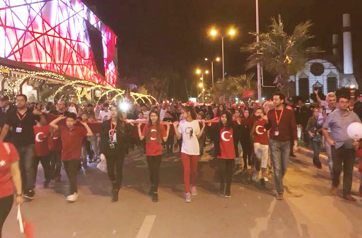 Park Forbes AVM önünden başlayan Fener Alayı, okul idareci ve öğretmenlerinin, öğrencilerin, velilerin ve hatta vatandaşların katılımıyla oldukça kalabalık oldu. Okul Bandosunun arkasında, öğrencilerin taşıdığı büyük boy Türk Bayrağı ve Atatürk portresi, öğrencilerin öğretmenleriyle hazırladığı Cumhuriyetle ilgili dövizler ve pankartlar, çocukların bayrak amblemli balonlarla ve ellerindeki bayraklarla oluşturduğu tablo, ailelerin bayrak ve fener-meşale-cep telefonu ışığı ile yürüyüşe katılması tam bir karnaval havası oluşturdu.