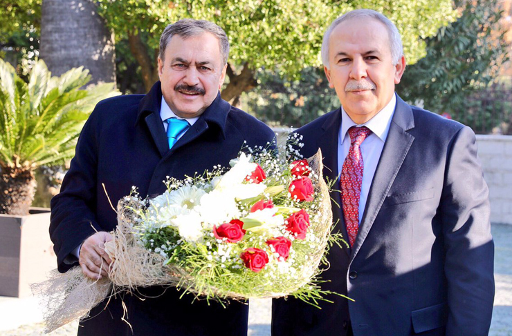 Hatay Valisi Erdal Ata’yı makamında ziyaret eden Bakan Eroğlu, ilimizdeki çalışmalar ve gelişmeler ile ilgili kısa bir brifing aldı.