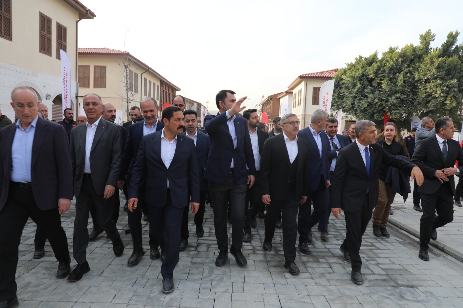 Bir yandan deprem konutlarının sosyal donatılarıyla beraber tamamlandığını bir yandan da tarihi ihya ettiklerini vurgulayan Bakan Kurum; “Hatay’ın simgesi olan tarihi Uzun Çarşı’yı, Atatürk Caddesi, Kemalpaşa Caddesi ve dünyanın ilk ışıklandırılan caddesi olan Kurtuluş Caddesi’ni yeniden eski ihtişamına kavuşturuyoruz. Tarihi Meclis Binası ve Asi Nehri’nin iki yakası’nda başlattığımız çalışmalarımızı da 7 gün 24 saat çalışarak kararlılıkla sürdürüyoruz. Anadolu’nun ilk camisi olan Habib-i Neccar Camisini de inşallah önümüzdeki günlerde Sayın Cumhurbaşkanımızın da teşvikleriyle ibadete açmış olacağız” ifadelerini kullandı.