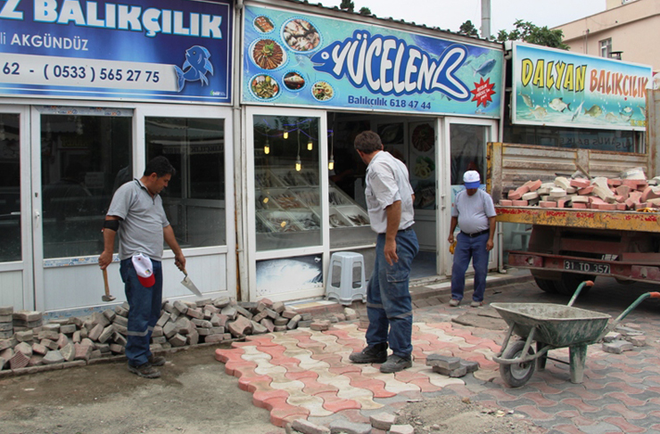 İskenderun Belediye Başkanı Seyfi Dingil, kent genelinde parke taşı döşeme çalışmalarının tüm hızıyla devam ettiğini belirtti. İskenderun Belediyesi Fen İşleri Müdürlüğü ekipleri Numune Mahallesinde bulunan semt ve balık pazarı içerisinde parke taşı tamir çalışması yapıyor.