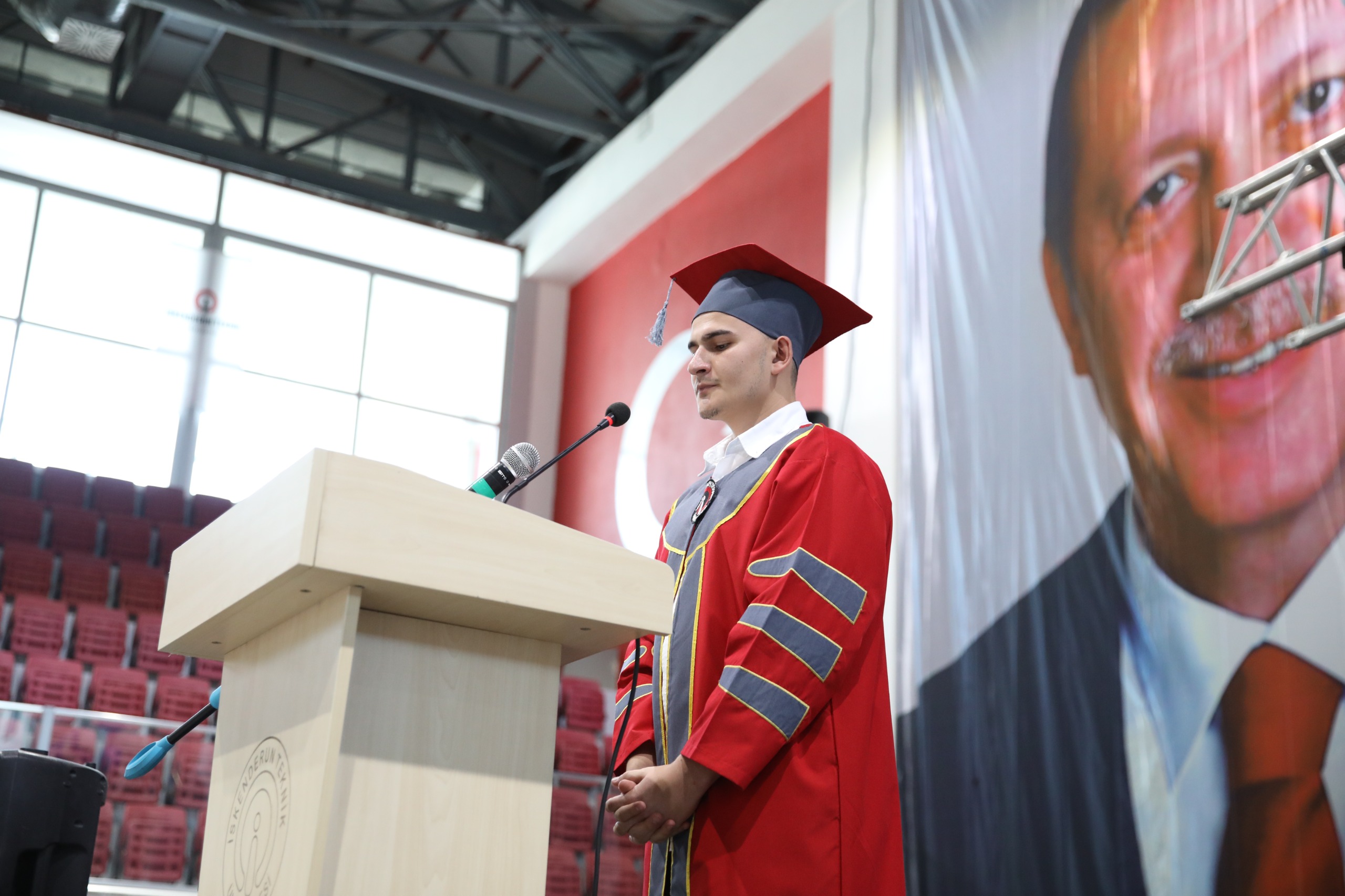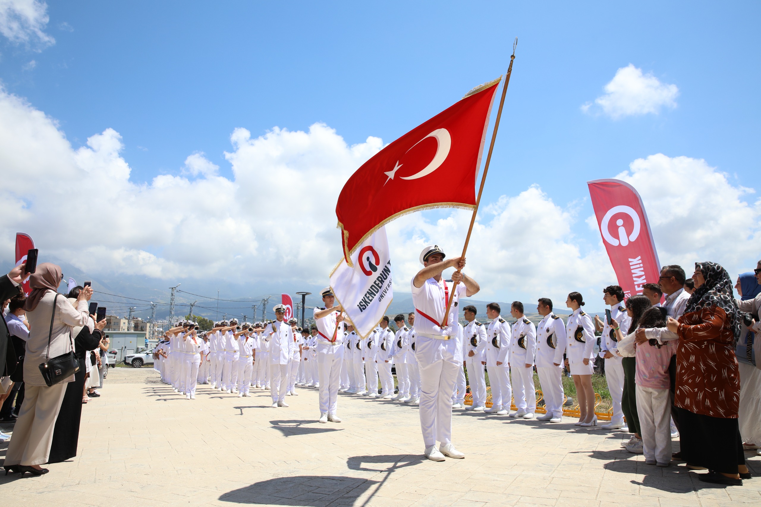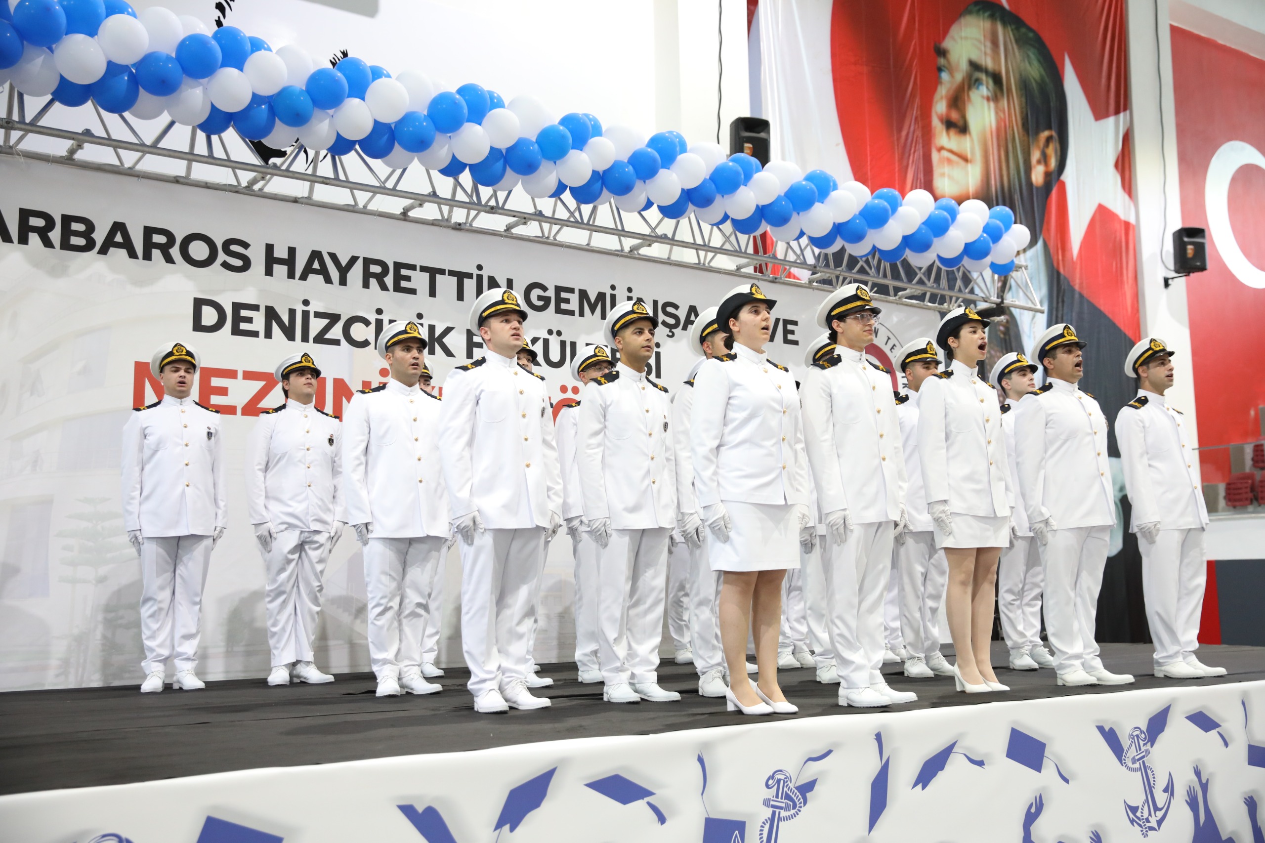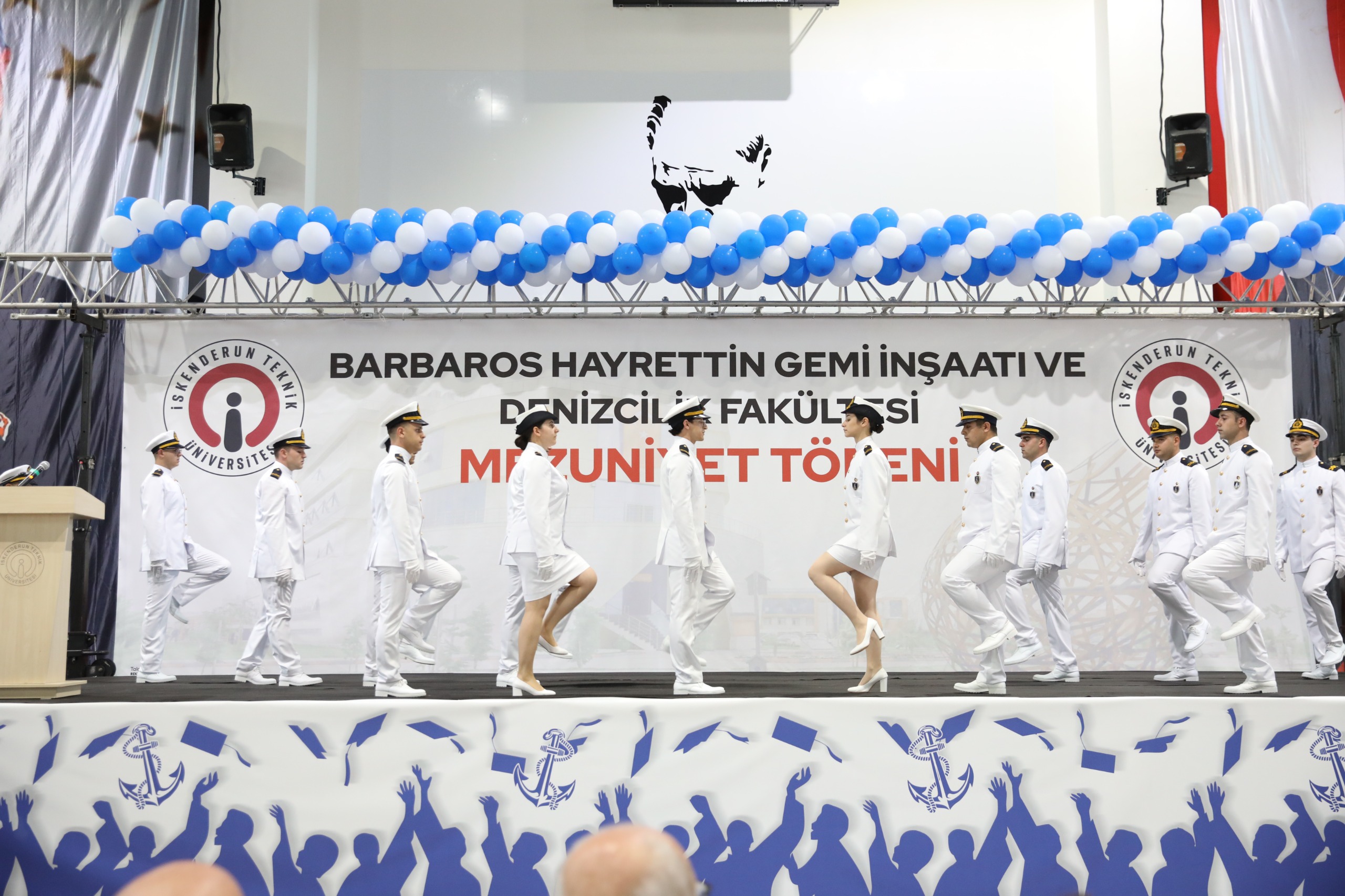 2023-2024 Barbaros Hayrettin Gemi İnşaatı ve Denizcilik Fakültesi mezuniyet töreni 16 Mayıs Perşembe günü İSTE Merkez Yerleşkesi Kapalı Spor Salonunda gerçekleştirildi. Yoğun ilginin olduğu törene İSTE Rektörü Prof. Dr. Tolga Depci ve Eşi Doç. Dr. Aytemis Depci ev sahipliği yaparken, İskenderun Kaymakamı Murat Sefa Demiryürek, Belen Belediye Başkan Vekili İsmail Kahraman, İskenderun İlçe Emniyet Müdürü Nevzat Güneş, İskenderun Deniz Ticaret Odası Başkanı Kemal Kutlu, denizcilik sektörünün önde gelen isimleri, İSTE akademik ve idari personeli, mezun öğrencilerin aileleri ve öğrenciler katıldı.