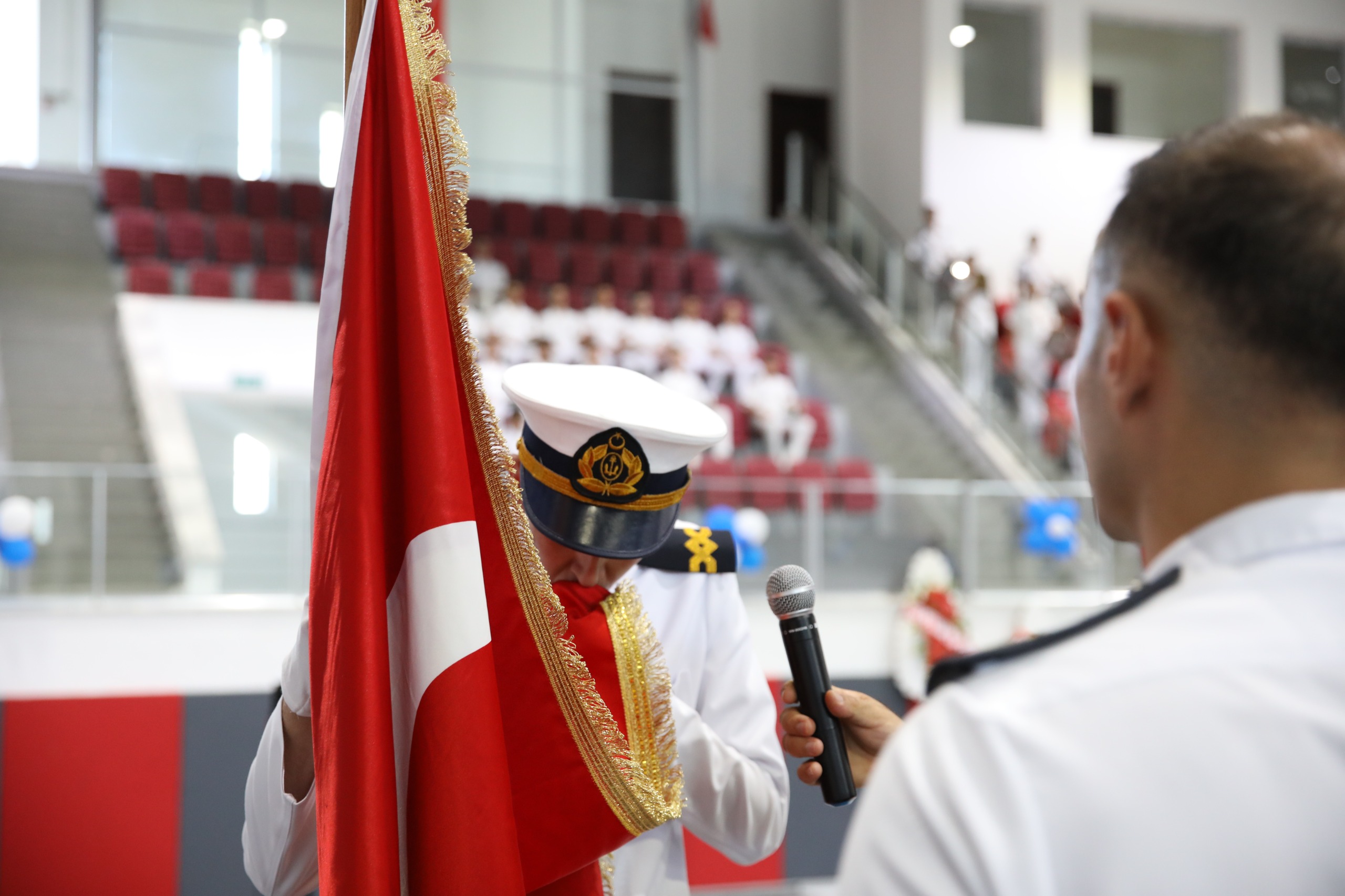 Mezuniyet programı Barbaros Hayrettin Gemi İnşaatı ve Denizcilik Fakültesi bandosunun Kapalı Spor Kompleksi önünde başlayan ve izleyicilerin büyük alkışlarıyla salona girişi ile devam eden coşkulu geçişle başladı. Saygı Duruşu ve İstiklal Marşı’nın okunması ile devam eden törende konuşan İSTE Rektör Yardımcısı ve Barbaros Hayrettin Gemi İnşaatı ve Denizcilik Fakültesi Dekan V. Prof. Dr. Meltem Eken’in konuşması ile devam etti.