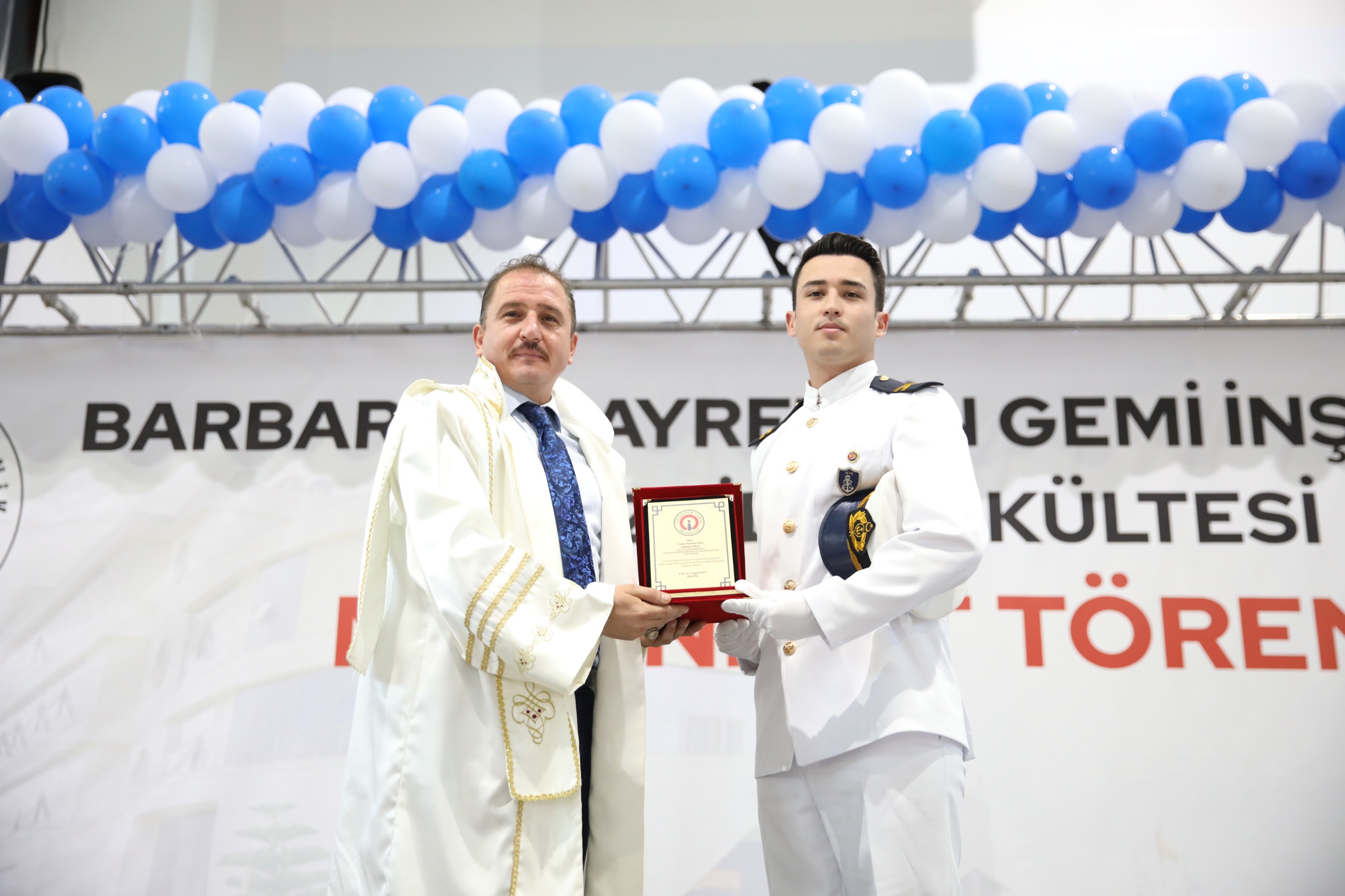 Törende Bayrak ve Flama devir teslim töreninin ardından mezun öğrenciler Denizcilik Meslek Yemini etti. İlk olarak fakülte ve bölümlerinde dereceye giren öğrencilere plaketleri ve sektör temsilcilerinin hediyeleri takdim edildi. Barbaros Hayrettin Gemi İnşaatı ve Denizcilik Fakültesi ve Denizcilik İşletmeleri Yönetimi programı birincisi Semih Yılmaz ve Deniz Ulaştırma İşletme Mühendisliği programı birincisi Görkem Ünlü’nün konuşmalarının ardında tüm mezun öğrencilere plaketleri verildi. Ayrıca, mezuniyet töreninde emeği geçen sektör paydaşlarına teşekkür plaketi takdim edildi.