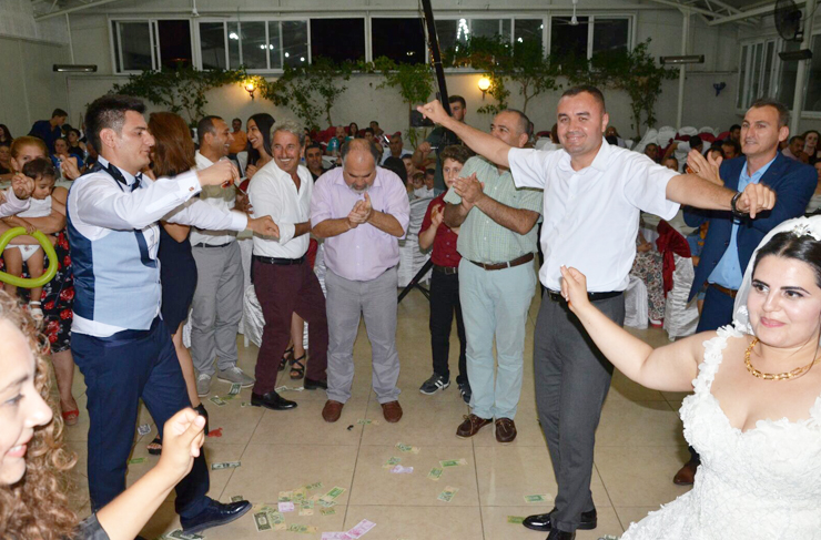 Kalabalık bir davetli topluluğunun katılım gösterdiği düğün törenine Arsuz Kaymakamı Musa Sarı, Arsuz İlçe Jandarma Komutanı Mehmet Emin Albayrak, Arsuz Truzim ve kültür derneği başkanı Hasan Arslan ile beraber mahalle muhtarları, STK temsilcileri katıldı.