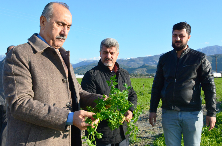 Arsuz Belediye Başkanı Nazım Culha, Arsuz’da etkili olan dolu yağışının ekinlere ve tarıma verdiği zararı yerinde inceledi.