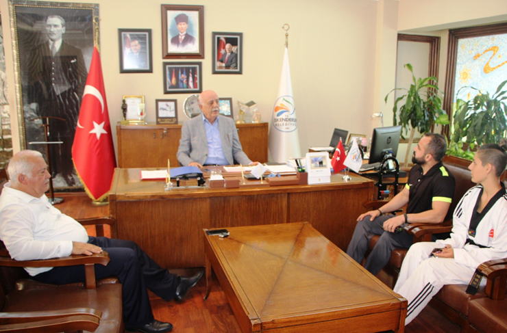 Ankara’da düzenlenen Yıldızlar Türkiye Taekwondo Şampiyonasında Türkiye Şampiyonu olan Azra Tuba Torun ve Karasopa Taekwondo Spor Kulübü antrenörü İsa Karasopa İskenderun Belediye Başkanı Seyfi Dingil’i makamında ziyaret etti.