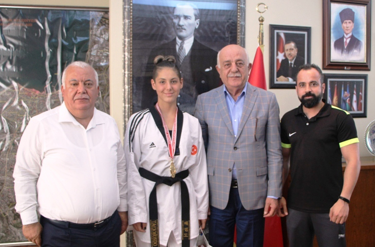 Ankara’da düzenlenen Yıldızlar Türkiye Taekwondo Şampiyonasında Türkiye Şampiyonu olan Azra Tuba Torun ve Karasopa Taekwondo Spor Kulübü antrenörü İsa Karasopa İskenderun Belediye Başkanı Seyfi Dingil’i makamında ziyaret etti.