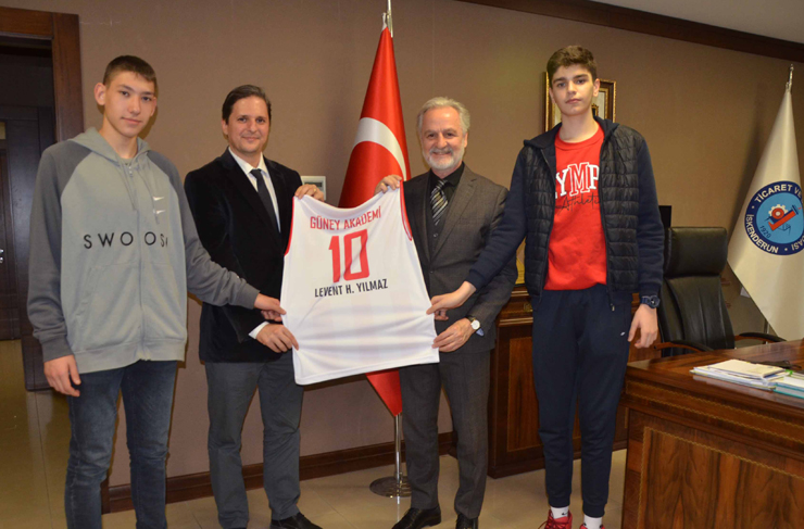 Güney Akademi Basketbol Hocası Nebil Özdemir ve milli basketbolcular Arda ile Efe, gerçekleştirilen bu ziyaretin anısına, İTSO Başkanı Levent Hakkı Yılmaz’a takımlarının 10 numaralı formasını hediye ettiler. (Haber Merkezi)