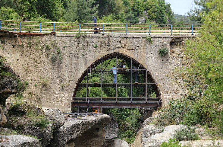 Hatay Büyükşehir Belediyesi (HBB), kentin tarihine sahip çıkarak, ilimizin önemli simgelerinden bir tanesi olan Batıayaz Köprüsü’nün restorasyon çalışmalarına devam ediyor. HBB Fen İşleri Dairesi tarafından yapılan açıklamada; “Batıayaz Köprüsü’nün restorasyon çalışmalarına geçen hafta itibariyle başlanmıştır. Restorasyonun gerçekleştirilebilmesi için gerekli olan askıya alma işlemi çelik iskelelerle yapılmaktadır. Mevcut köprüye alternatif yol çalışması da eş zamanlı olarak gerçekleştirilmektedir. Haziran ayı sonunda restorasyon çalışmaları tamamlanacaktır. Alternatif yol köprünün 100 metre ilerisine yapılacaktır” ifadelerine yer verildi. (Haber Merkezi)