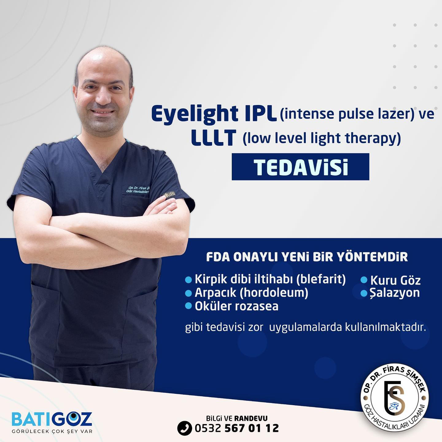 İskenderun Batıgöz Cerrahi Tıp Merkezi Doktorlarından Firas Şimşek, Eyelight IPL (Intense Pulse Lazer) ve LLLT (Low Level Light Therapy) tedavi yöntemi hakkında açıklamalarda bulundu. Şimşek bu yöntemle, göz kapağındaki gözyaşı yağ bezlerindeki bakteri veya demodex adı verilen parazite bağlı iltihabi durumun tedavisi sağlanarak bu bezlerin sağlıklı çalışmasının amaçlandığını söyledi. Dr. Firas Şimşek açıklamalarında ayrıca şunları kaydetti;