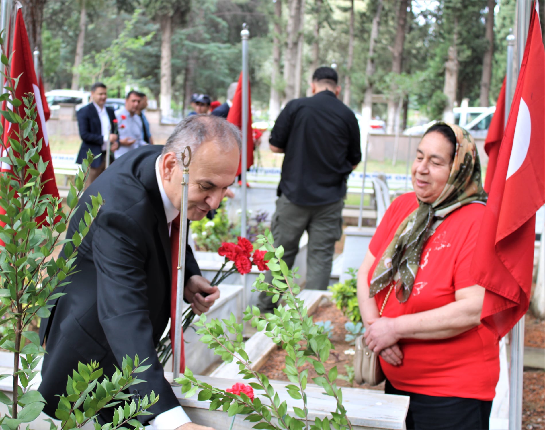 Kaymakam Yönden, şehitlerimizin mübarek kabirlerini tek tek ziyaret etmek suretiyle başuçlarına da karanfil bırakmasının yanı sıra muhterem aileleriyle de yakından ilgilenerek, acılarını paylaştı. (Haber Merkezi)