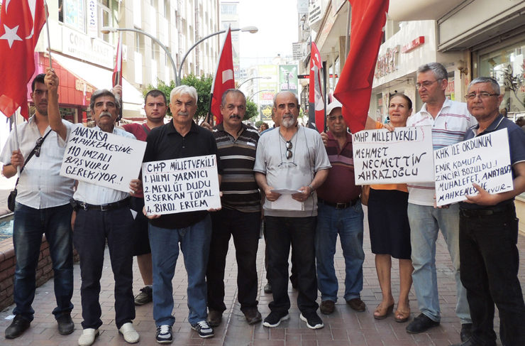 Bu kararların alınması, FETÖ bağlantısı ile yapıldığı iddia edilmektedir. Bunlar doğru değildir. FETÖ ordumuzun Atatürkçü subaylarına tuzak kurmuştur. FETÖ, ABD’nin orduyu zayıflatmak için saldırısını desteklemiştir. Güçlü ordu istiyorsak, ordumuzun savaş gücünü zayıflatan bu kararlardan geri dönmek zorundayız. Güçlü ordu için milletvekillerini kararın iptali ve Anayasa Mahkemesine götürülmesi için imzaya davet ediyoruz” dedi.