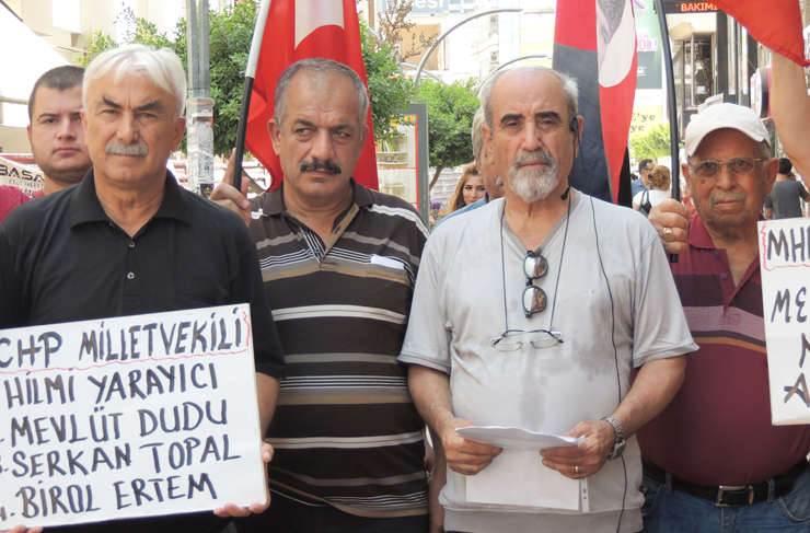 İskenderun’da Havuzlu çarşıda düzenlenen basın açıklamasına Vatan Partisi İlçe Başkanı İbrahim Bedir, Taşeron İşçileri Derneği İskenderun Şube Başkanı Sadık Karakaş, İskenderun Demir Çelik Çalışan ve Emekliler Derneği Başkanı Bayram Özarslan, TGB yöneticisi Burak Batur katıldılar.