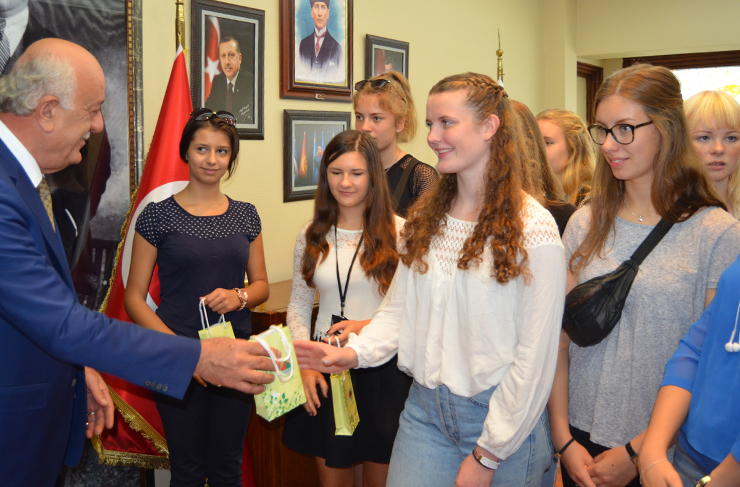 İbni Sina Anadolu Lisesi İngilizce öğretmeni ve proje koordinatörü Filiz Egemen nezaretinde 15 öğrenci ve 4 öğretmenden oluşan gruba, Belediye Başkanı Seyfi Dingil, ilçemiz ve belediye başkanının görev ve yetkileri hakkında bilgiler verirken, ayrıca hediye takdiminde bulundu.