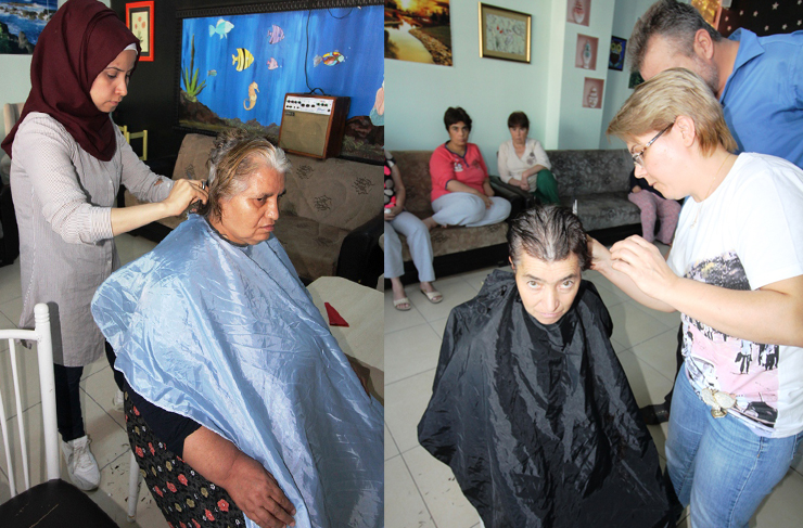 İskenderun Belediyesi Kültür Müdürlüğüne bağlı Denizciler Kadın Kültür Merkezinde Halk Eğitim Merkezi eğitmenleri tarafından kuaförlük eğitimi gören kursiyerler Beyaz Melek Bakım Merkezinde hünerlerini gösterdi.