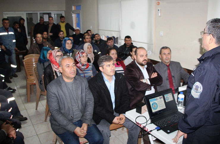 Konferans Salonunda personellere slayt gösterisi ile sunum yaparak hitap eden polis memuru Osman Nihat Işık, yolda ve kavşaklarda kontrollü yaya geçişi kurallarını anlatarak, emniyet kemeri takmanın büyük önem taşıdığına dikkat çekti.
