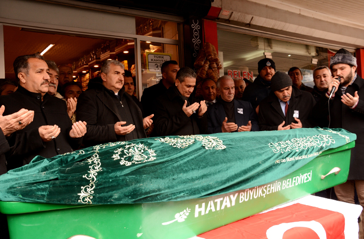 Cenaze namazı öncesi Belen Belediyesi hizmet binası önünde yapılan uğurlama töreninde duygulu anlar yaşayan belediye personeli Meclis Üyeleri Yakup Öztürk’ü dualarla uğurladı.