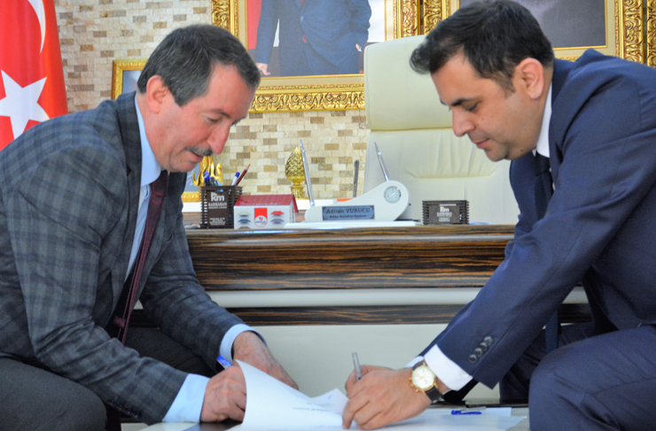 “Erasmus Proje Yazma Eğitimi” projesi protokolü, Belediye Başkanı Adnan Vurucu, Doğu Akdeniz Kalkınma Ajansı (DOĞAKA) Genel Sekreteri Onur Yıldız tarafından imzalandı.