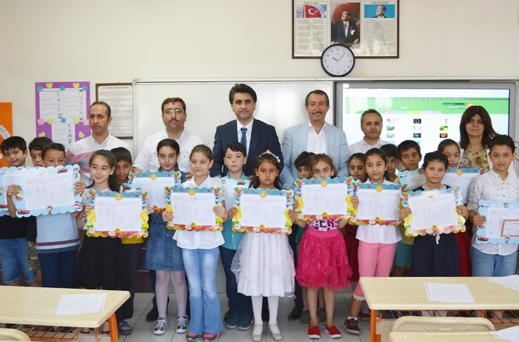 Belen Kaymakamı Abdulaziz Aydın, beraberinde Belediye Başkanı Adnan Vurucu ve İlçe Milli Eğitim Müdürü Bekir Şahan’la 2017-2018 Eğitim Öğretim döneminin tamamlanması dolayısıyla Atatürk İlk ve Orta Okulundaki karne dağıtım törenine katıldı. Saat 10:00’da gerçekleştirilen törende ikinci, üçüncü, dördüncü ve altıncı sınıf öğrencilerinin karne dağıtımına eşlik edilerek öğrencilerin heyecanlarına ortak oldular.