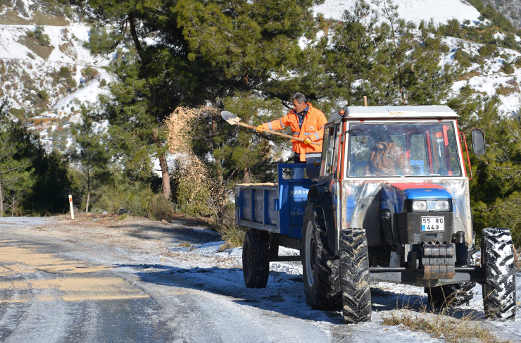 Yoğun kar yağışı nedeniyle, kapanan ve buzlanma sebebiyle aksayan ve kesintiye uğrayan trafik akışının normale dönmesi ve mağduriyetin yaşanmaması için Belen Fen İşleri Müdürlüğüne bağlı ekipler Atik, Yapraklı, Benlidere, Güzelyayla ve Gedik mahallelerinde yol açma ve genişletme çalışmalarının ardından, Fen İşleri ekipleri, bugün de buzlanmadan dolayı yaşanabilecek tüm olumsuzlukları en aza indirebilmek ve ana yollar ile minibüs güzergahlarını trafiğe açık tutabilmek için iş makineleri de bugün itibari ile yol tuzlama çalışmalarını Atik, Yapraklı, Benlidere, Soğukoluk ve Gedik mahallelerinde devam ediyor.