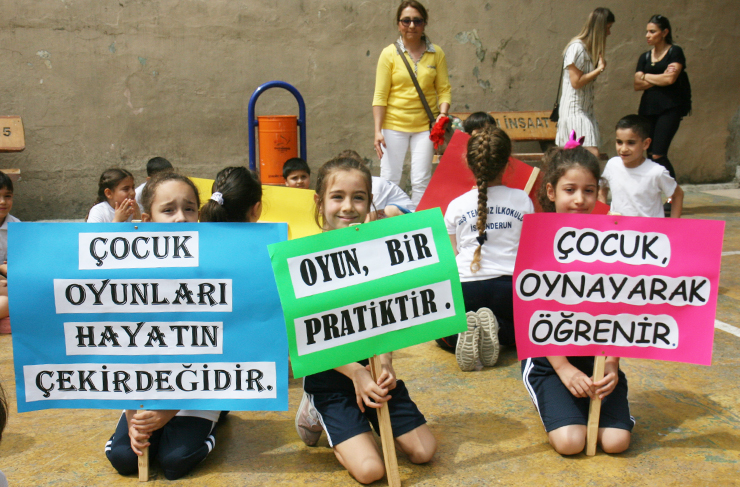 Açık havada öğrenmeyi ve oynamayı kutlamak ve ilham vermek amacıyla düzenlenen etkinlikler kapsamında okul bahçesinde ilk önce ‘Yağ Satarım Bal Satarım’ oynayan öğrenciler oldukça keyifli dakikalar geçirdiler. Daha sonra müzik eşliğinde de keyiflerince dans eden ve oyunlar oynayan çocuklar, hazırladıkları ‘Çocuk Oyunları Hayatın Çekirdeğidir’, ‘Oyun Bir Pratiktir’, ‘Çocuk Oynayarak Öğrenir’ pankartlarıyla sosyal mesajlar da verdiler.