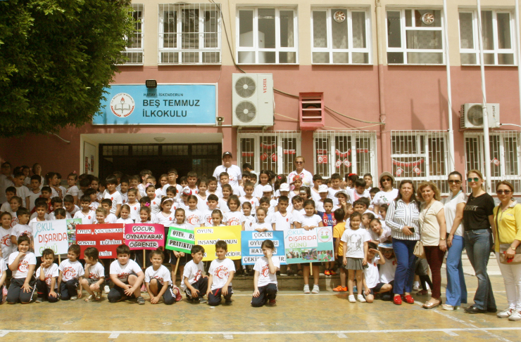 Milli Eğitim Bakanlığının, tüm ilkokul ve okul öncesi eğitim kurumlarına, 23-29 Mayıs’ta küresel ölçekte düzenlenecek ‘Okul Dışarıda Günü’ ve ‘Dünya Oyun Oynama Günü’ etkinlikleri kapsamında sınıflarını açık havaya taşıyıp derslerini oyun oynayarak işlemeleri çağrısına İskenderun Beş Temmuz İlkokulu idarecileri kayıtsız kalmadı.