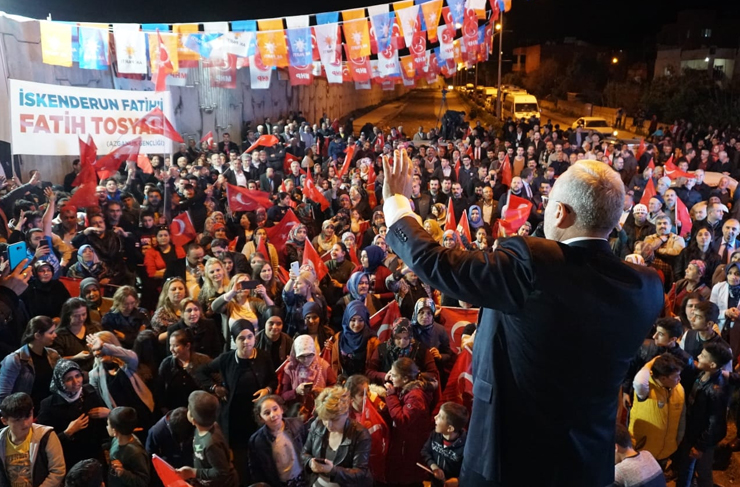 İbni Sina Anadolu Lisesi civarında ve Sakarya’da semt pazarı civarında düzenlenen mitingde ilk olarak konuşan MHP İlçe Başkanı Turan Bozkurt, Allah’ın izniyle zafere ulaşacaklarını ve 31 Mart’ta Fatih Tosyalı’yı başkan yapacaklarını ifade etti. Ak Parti İlçe Başkanı Av. Abdülkerim Güven ise Cumhur İttifakı ile kazananın İskenderun olacağını söyledi.