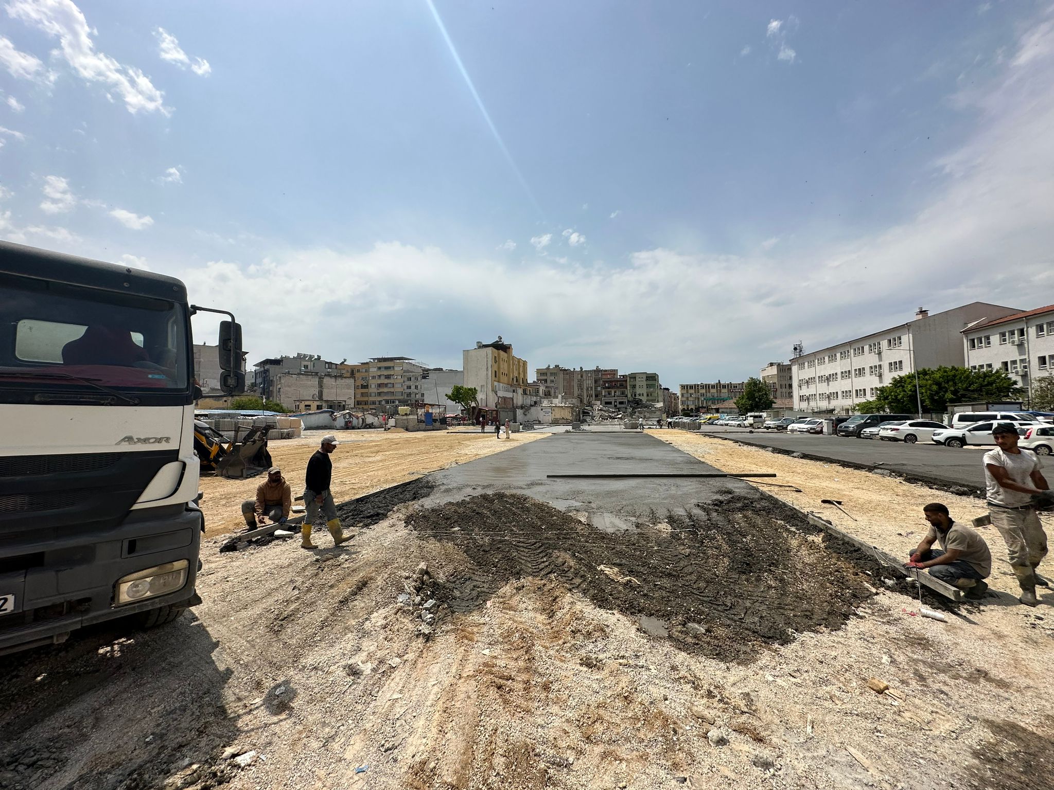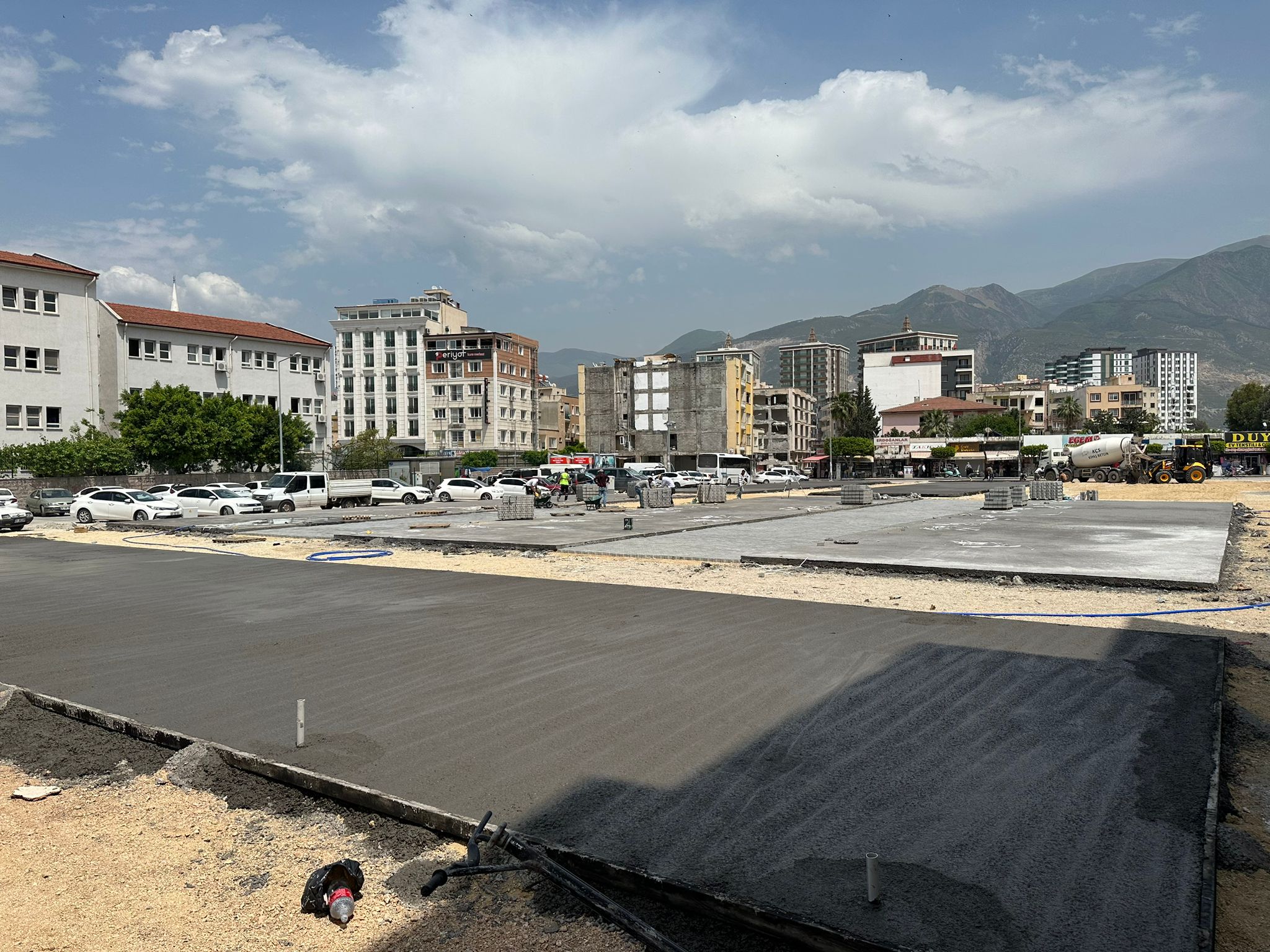 Depremde Yıkılan İskenderun Büyük Çarşı İşhanı Arazisine yapılması planlanan 98 Adet Konteyner İşyerlerinin inşaatına başlandı.