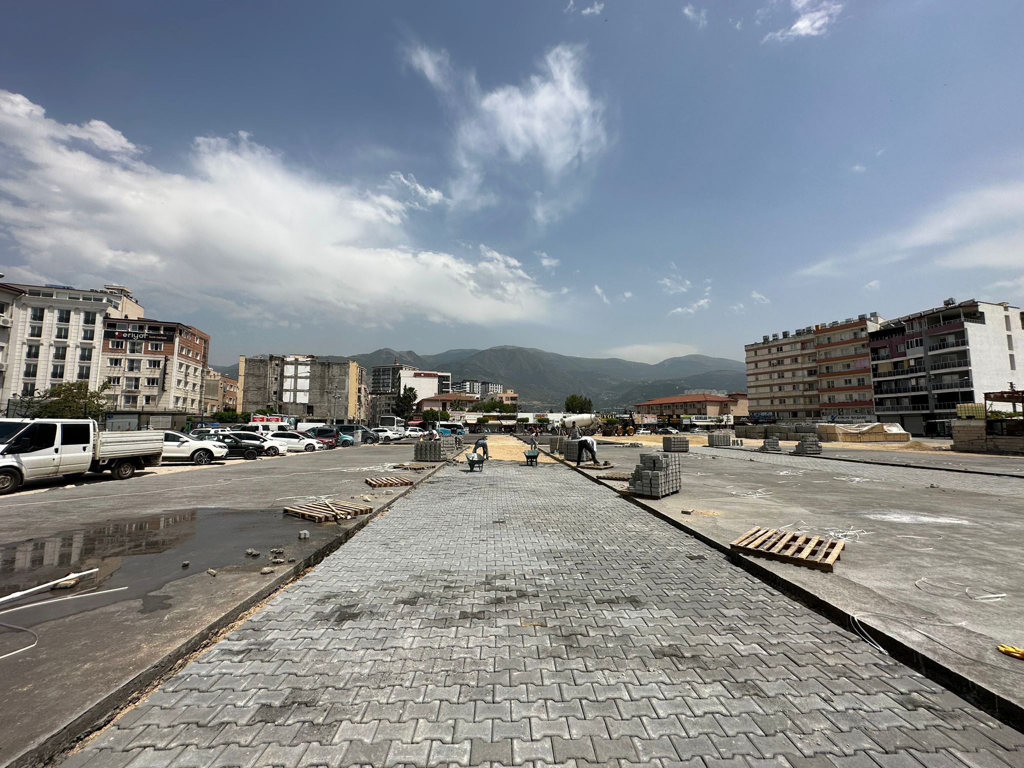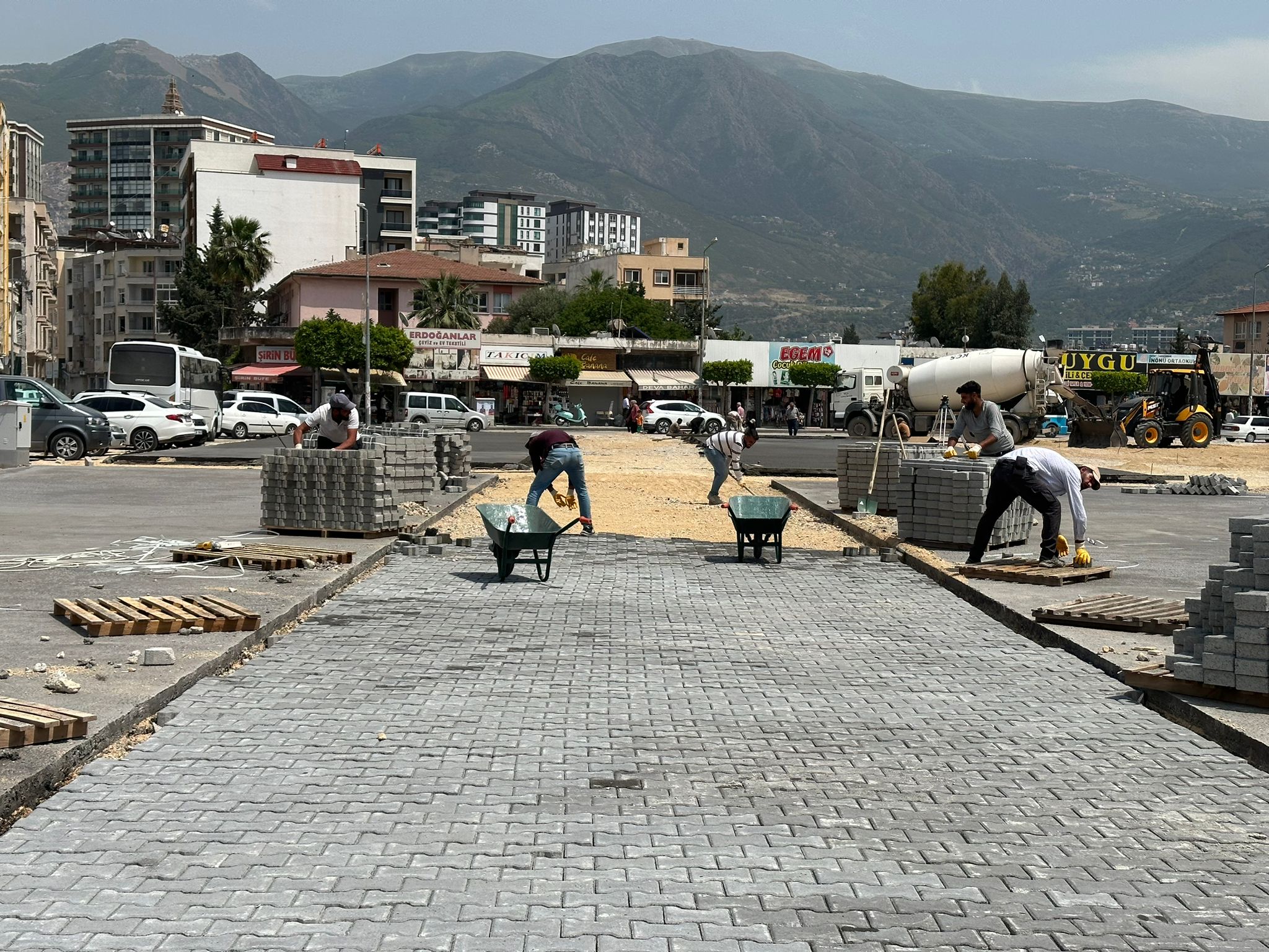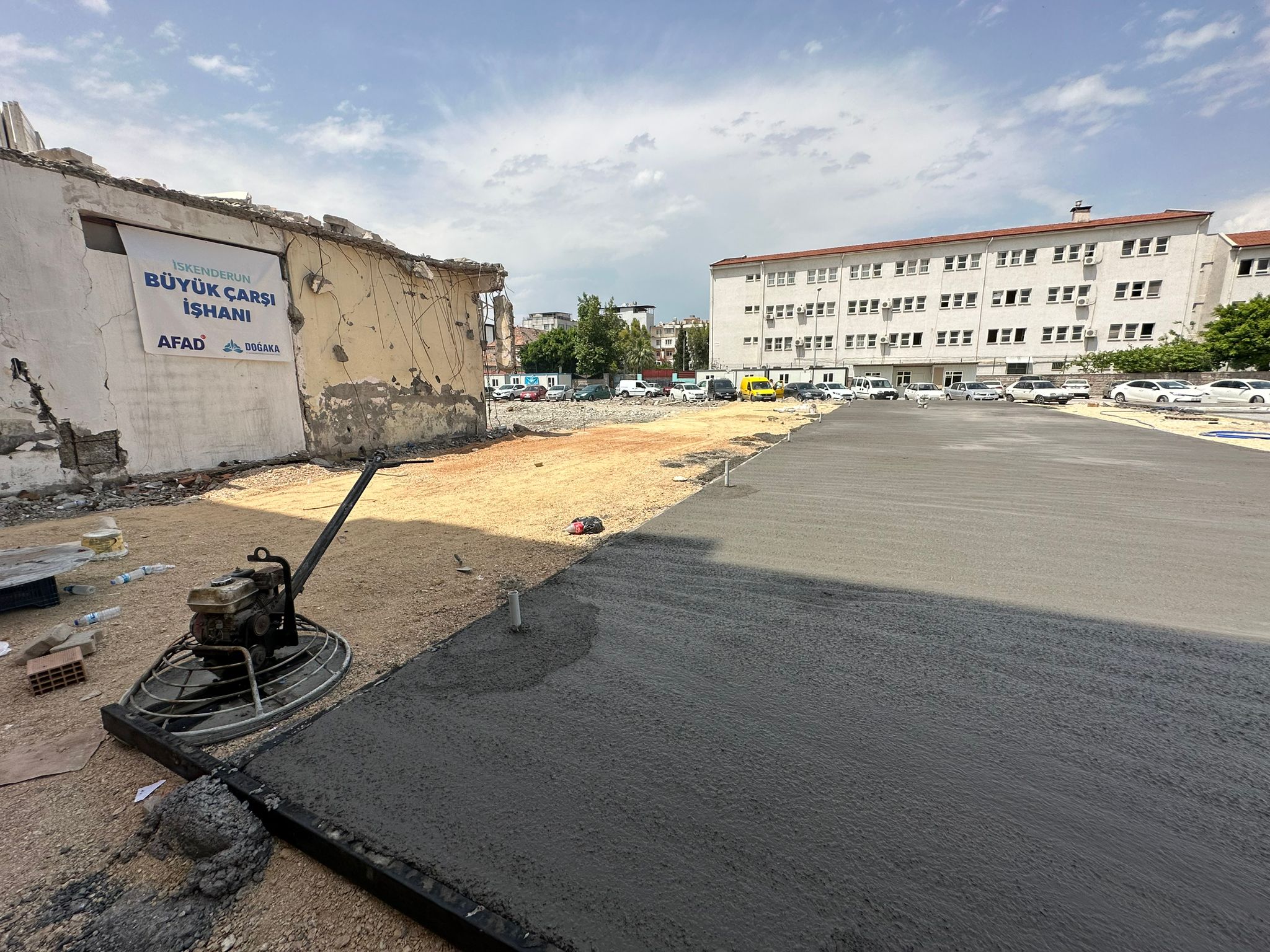 Depremde Yıkılan İskenderun Büyük Çarşı İşhanı Arazisine yapılması planlanan 98 Adet Konteyner İşyerlerinin inşaatına başlandı.
