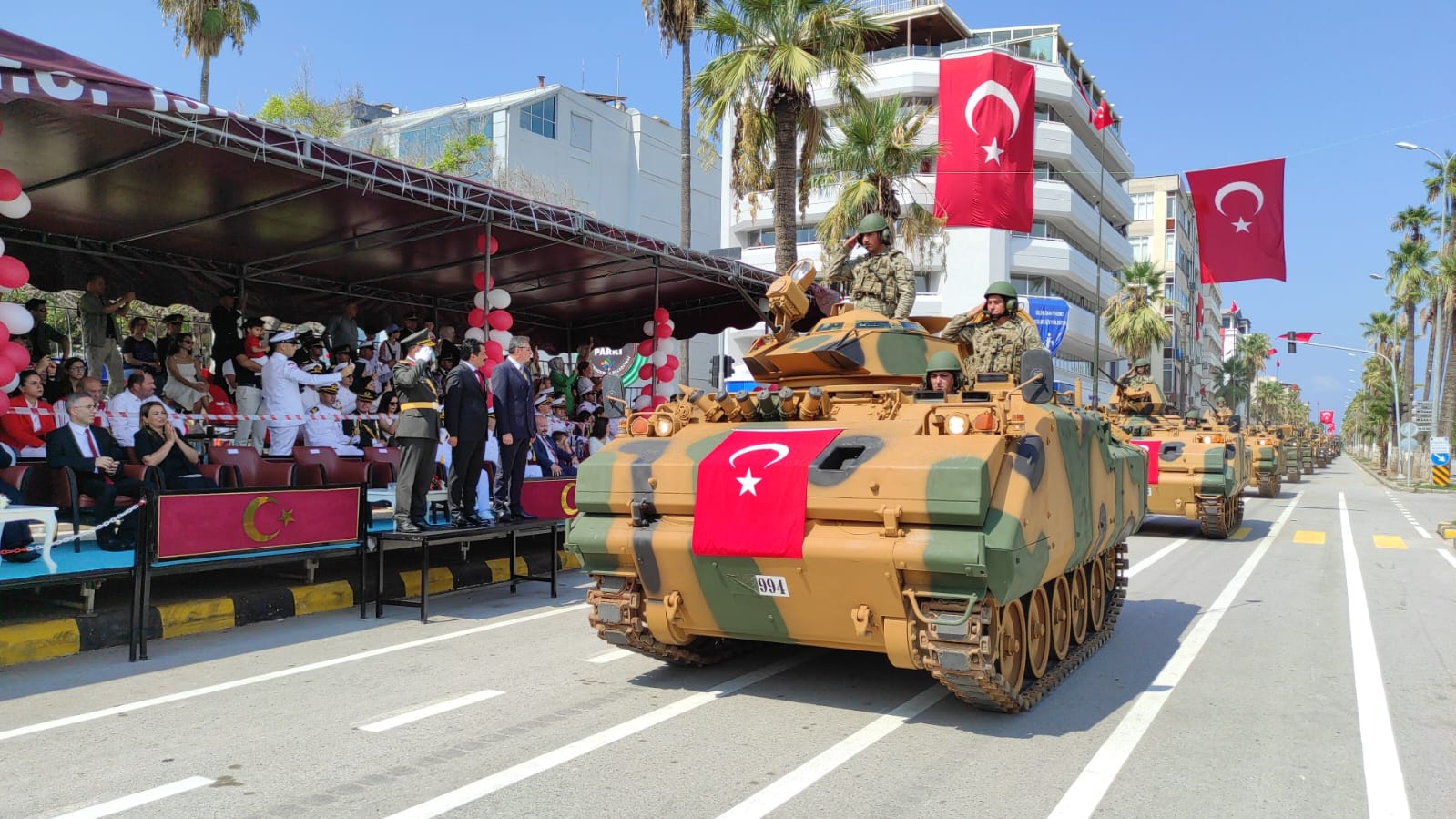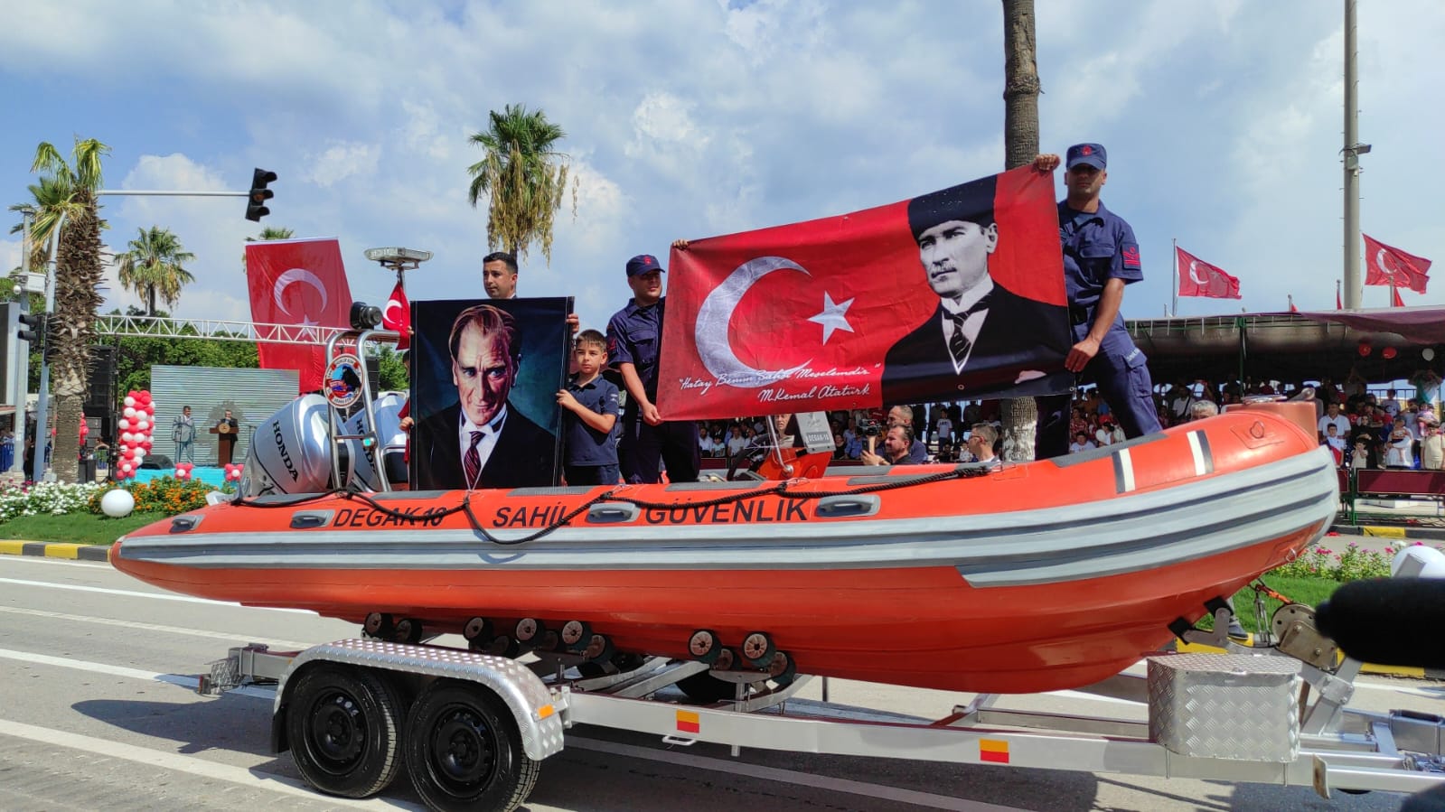 Resmigeçit töreninde dosta güven, düşmana korku salan Türk Askeri, özel birlikler, tam teçhizatlı askeri araçlar, Güvenlik güçleri, kurumların araçları ve yunus ekipleri, motosikletli zabıta, motosiklet kulüpleri ve Kızılay’ın geçişleri de alkışlar arasında gerçekleşti. (Haber: Helga TERBİYELİ)