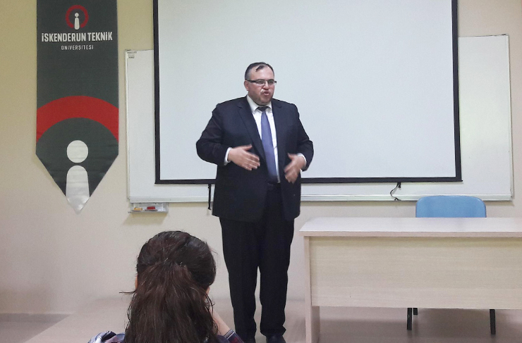 İskenderun Teknik Üniversitesi (İSTE) Merkez Kampus Rektörlük Konferans Salonu’nda gerçekleşen programda Yrd. Doç. Dr. Necmettin Çalışkan “Markalaşma ve başarı öyküsü” hakkında öğrencilere bilgi verdi.