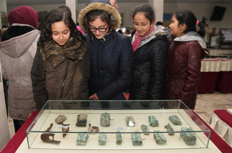 Belen Belediyesi Düğün Salonu’nda sergilenmek üzere kısa süreliğine getirtilen, Çanakkale Savaşı’nda kullanılan gerçek silah, top mermisi ve kıyafet gibi çeşitli savaş malzemelerinin bulunduğu sergi, öğrenciler tarafından ilgiyle gezildi.