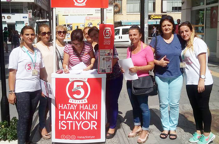 Hatay Büyükşehir Belediye Başkanı Doç. Dr. Lütfü Savaş tarafından başlatılan “Hatay Hakkını İstiyor” kampanyasına destek veren Cumhuriyet halk Partisi İskenderun Kadın Kolları, Havuzlu Çarşıda açılan stantta bir araya gelerek Hatay’ın 4. Teşvik Bölgesinden 5. Teşvik Bölgesine alınması için imzalarını attılar.