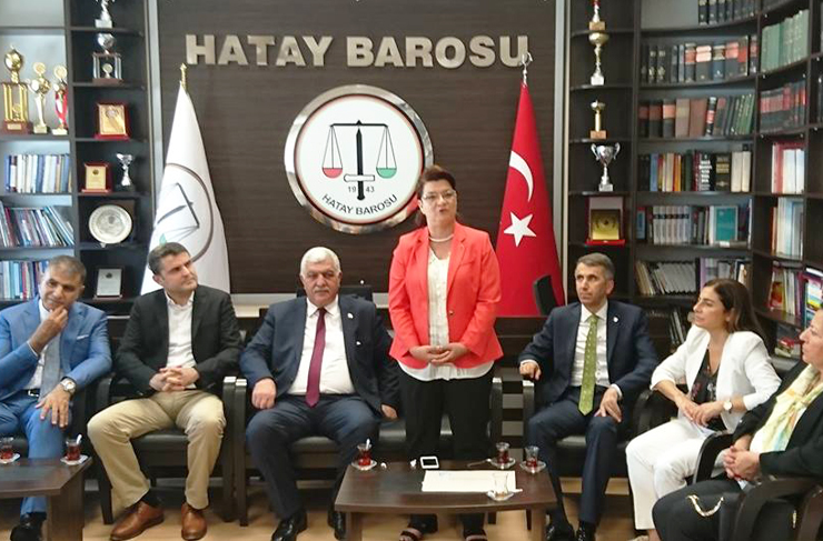 Hatay Adliye Sarayı konferans salonunda düzenlenen mazbata takdim töreninde Mehmet Güzelmansur, Suzan Şahin, Serkan Topal ve İsmet Tokdemir mazbatalarını Hatay Cumhuriyet Başsavcısı Ahmet Tekne, Hatay Adalet Komisyonu Başkanı Ahmet Turan Oral, İl Seçim Kurulu Hakimleri Sevcan Koku, Mehtap Karslı ve Cangül Sazak’ın elinden aldılar.