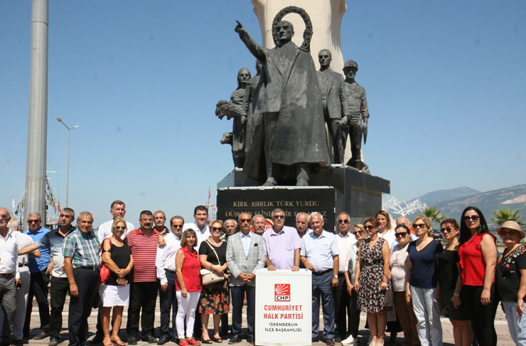 Cumhuriyet Halk Partisi İskenderun İlçe Başkanı Yusuf Mansuroğlu ve yönetimi, Kadın Kolları Başkanı Dr. Muhsine Korkmaz ve yönetimi, İskenderun Belediyesi CHP’li Meclis üyeleri, Arsuz Belediyesi eski Başkanı Nazım Culha, İskenderun Belediyesi eski Başkanı Dr. Yusuf Civelek, İskenderun Belediye Başkan Adayı Dr. Yılmaz Şahutoğlu ile partililerin katılım gösterdiği törende konuşan İlçe Başkanı Mansuroğlu; “CHP Ailesi’nin başı dik, ‘Altı Ok’a sahip çıkma kararlılığındaki üyeleri olarak Mustafa Kemal’in takipçisi ve neferleri olmaktan gurur duyuyoruz” dedi.