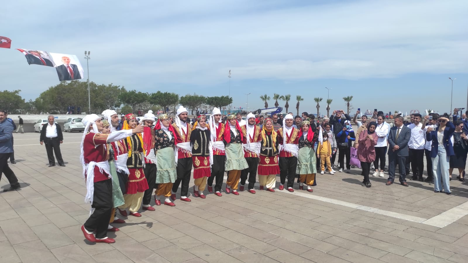 Halk Eğitim Merkezi Halk Oyunları Ekibinin gösterisinin ardından protokol üyeleri çocuklarla birlikte kitap fuarının açılış kurdelesini kesti.