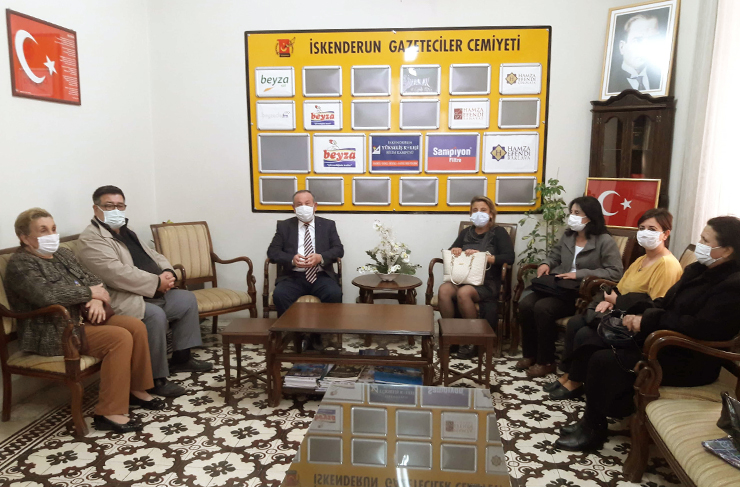 Cumhuriyet Kadınları Derneği Hatay Şubesi Yönetim Kurulu Üyeleri, İskenderun Gazeteciler Cemiyeti (İGC)’ni ziyaret etti. 73 ilde kurulu olduğunu ve Hatay’da geçen yılın Kasım ayında teşkilatlandığını kaydeden Hatay Şube Başkanı Filiz Akın, pandemi süreci nedeniyle sınırlı etkinlik yapabildiklerini söyledi. Arsuz Karahüseyinli’de orman yangını nedeniyle kütüphanenin yanması dolayısıyla kitap bağışında bulunduklarını, bunun yanı sıra Amik Ovası köylülerinin dertlerini de dinlediklerini ifade eden Akın ‘Sen Yağmur Ol Ben Bulut’ sloganıyla su tasarrufu imza kampanyası başlattıklarını da belirtti.