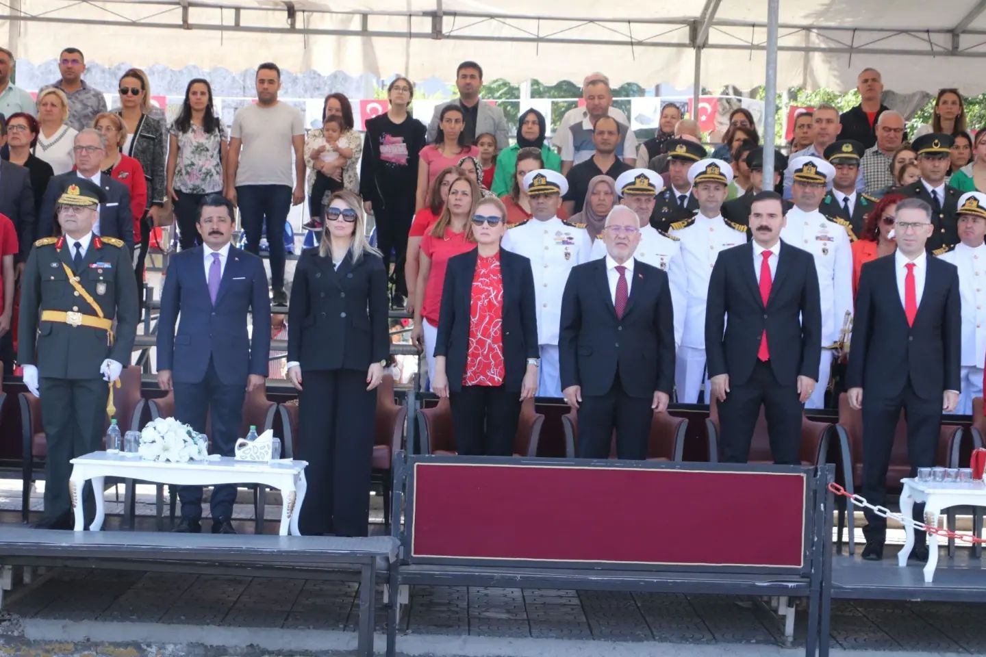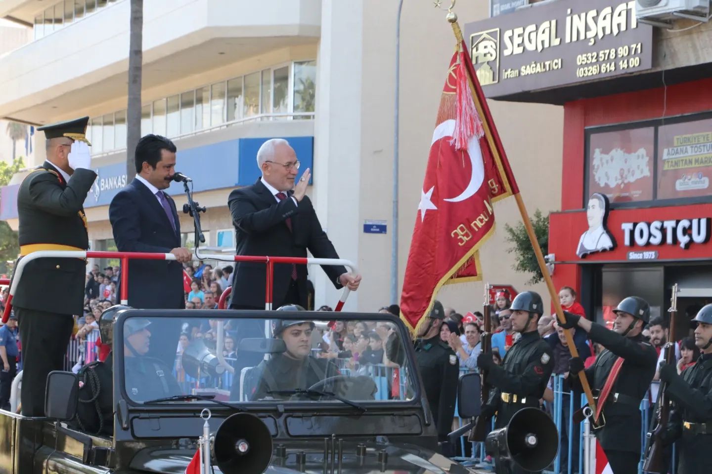 İskenderun Sahilinde Atatürk Bulvarındaki tören alanında İskenderun Kaymakamı Murat Sefa Demiryürek, İskenderun 39’uncu Mekanize Piyade Tugay Komutanı ve Garnizon Komutanı Tuğgeneral Hakan Tutucu ve İskenderun Belediye Başkanı Fatih Tosyalı vatandaşların 29 Ekim Cumhuriyet Bayramını kutladı.