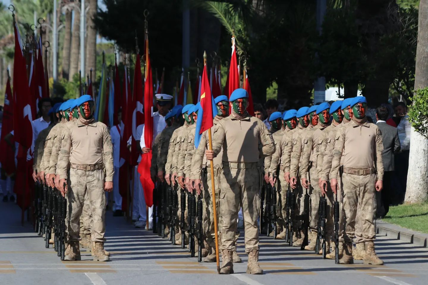 Törende ayrıca öğrenciler günün anlam ve önemine ilişkin şiirler okurken, İskenderun Halk Eğitim Merkezi Halk Oyunları Ekibinin gösterileri ile Türk Askeri’nin dosta güven, düşmana dost görüntüleri kutlamalara ayrı bir renk kattı.