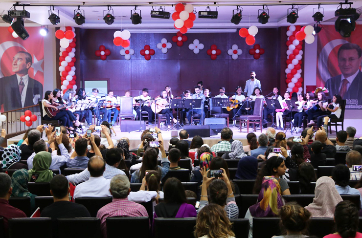 Hatay Büyükşehir Belediyesi Mesleki Edindirme Kursları (HATMEK) gitar bölümü öğrencileri, Cumhuriyet’in kuruluşunun 95. yıl dönümünü münasebetiyle HATMEK konferans salonunda konser düzenledi. HATMEK Konferans Salonunda düzenlenen etkinliğe Hatay Büyükşehir Belediye Başkanı Doç. Dr. Lütfü Savaş ve eşi Nazan Savaş’ın yanı sıra HBB Genel Sekreteri Prof. Dr. Mehmet Maden, HBB Kültür Dairesi Başkanı Mehmet Bozkurt, HBB Muhtarlar Daire Başkanı Durmuş Yıldırım, HBB İnsan Kaynakları Daire Başkanı Ceyhun Cevrioğlu ve çok sayıda vatandaş katılım gösterdi.