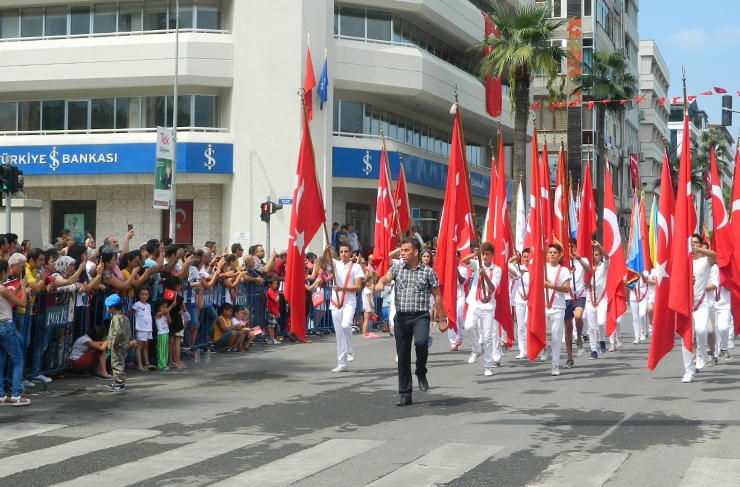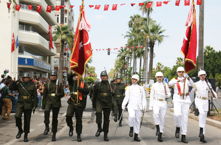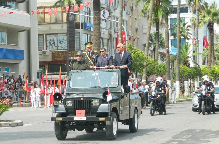Daha sonra saat 11.00’da Atatürk Bulvarında resmi tören gerçekleştirildi. Buradaki tören ise İskenderun Kaymakam Vekili Antakya Kaymakamı Eflatun Can Tortop, Garnizon Komutanı Erkan Olgay ve Belediye Başkanı Seyfi Dingil’in törene katılanlar ve halkın bayramını kutlamasıyla başladı.