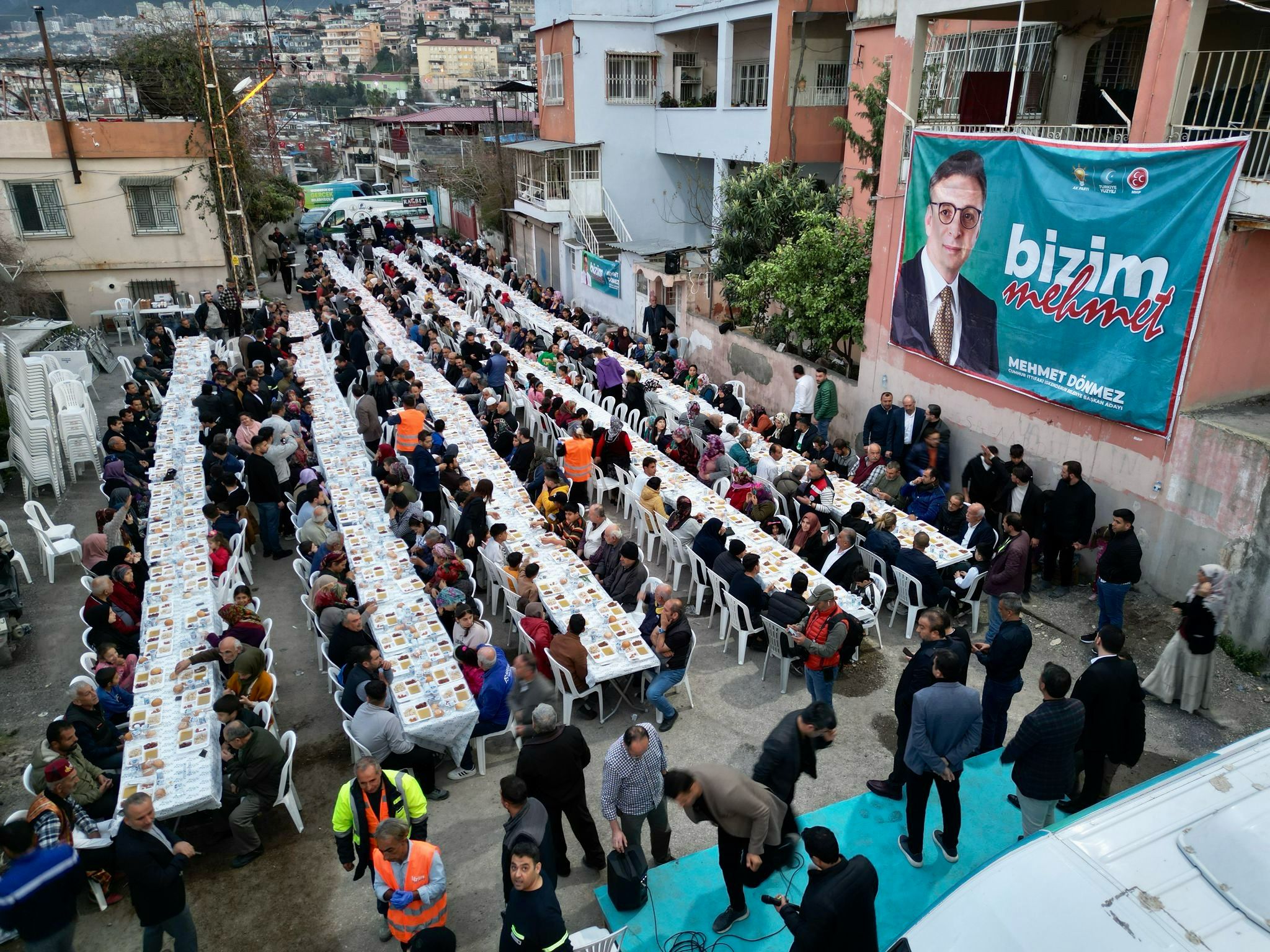 Daha sonra mahalle halkına seslenen Cumhur İttifakı İskenderun Belediye Başkan Adayı Mehmet Dönmez, Ramazan ayında Esentepe Mahallesinin güzel insanları ile aynı sofrada olmaktan duyduğu memnuniyeti dile getirdi. Mahallenin her sorununu bildiğini kaydeden Dönmez, Belediye Başkanı olarak değil de Mehmet Dönmez olarak mahalleye taziye evi ve çok amaçlı salon sözü verdi. 1 Nisan’dan itibaren İskenderun’da çok büyük değişim olacağının altını çizen Belediye Başkan Adayı Mehmet Dönmez, kazananın İskenderun olacağını sözlerine ekledi.